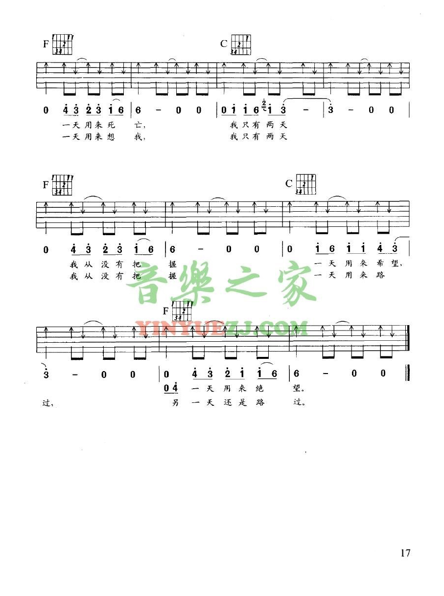 许巍《两天》吉他谱 - 很多人都在弹的版本