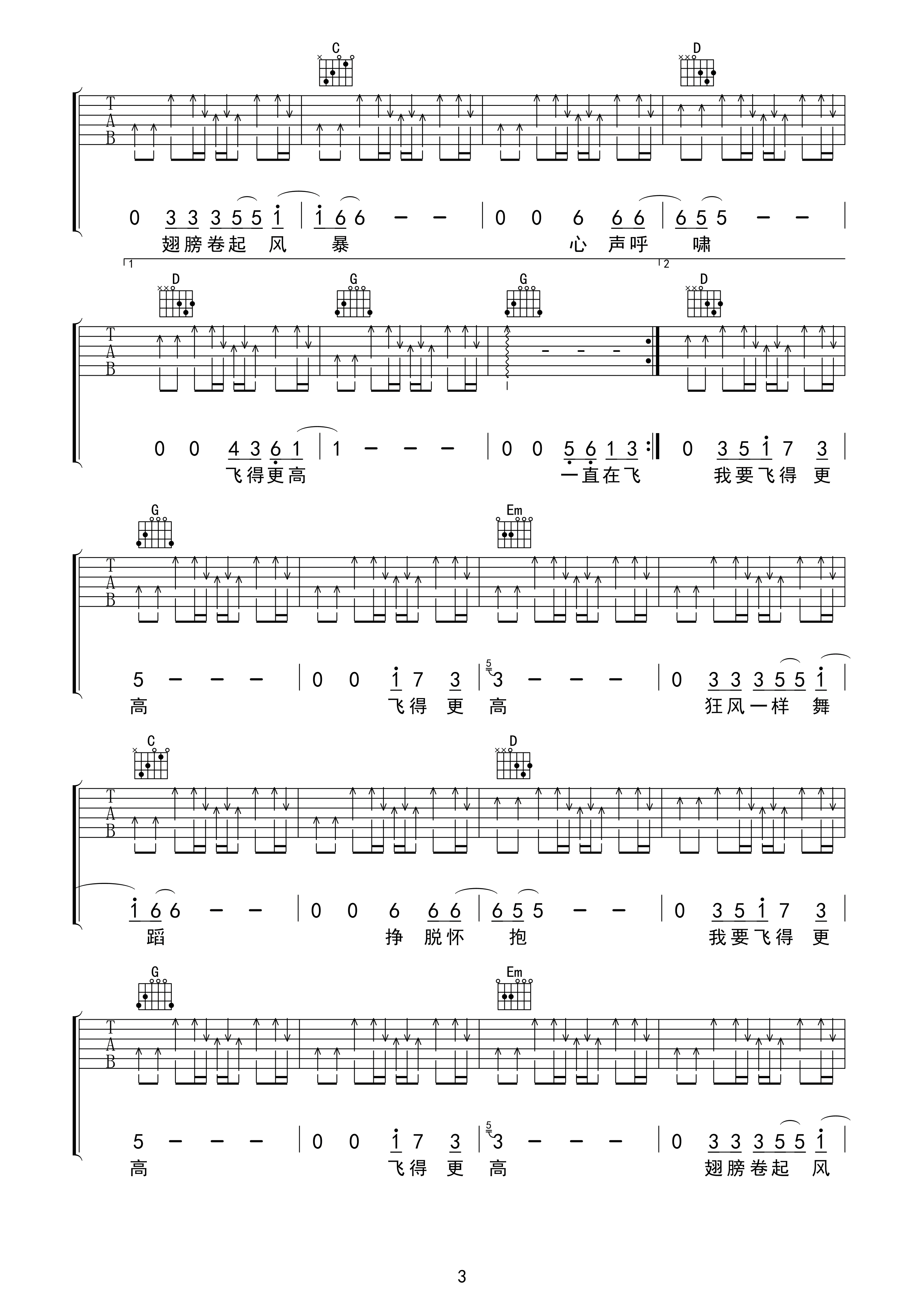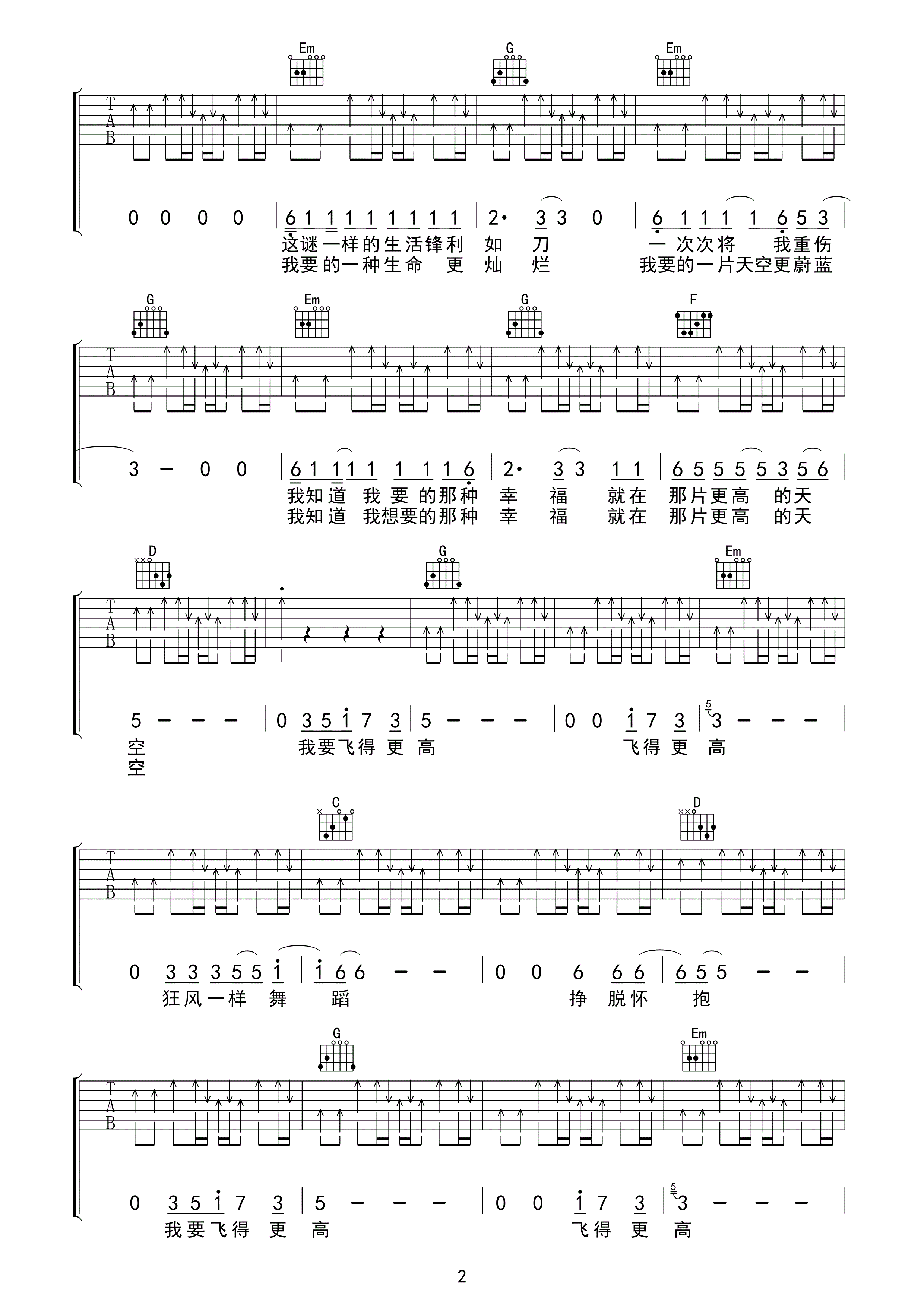 汪峰《飞得更高》吉他谱 - 非常多人都在弹的版本