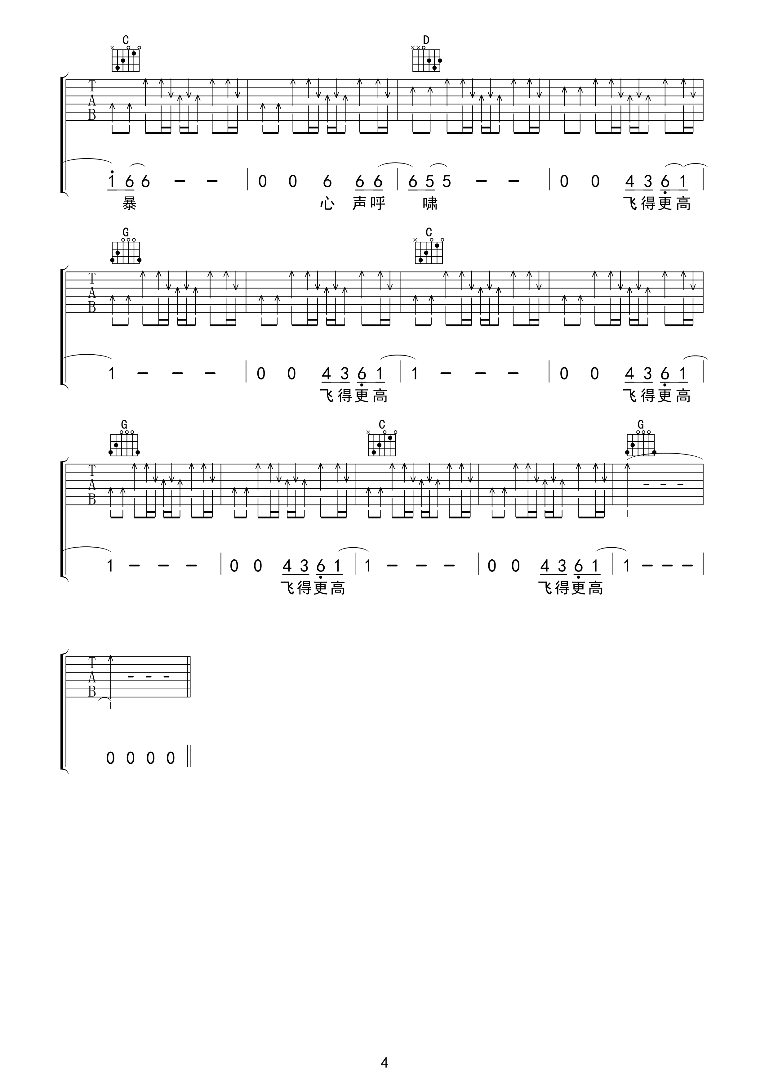 汪峰《飞得更高》吉他谱,KZB编配出品,共有4张高清图谱。