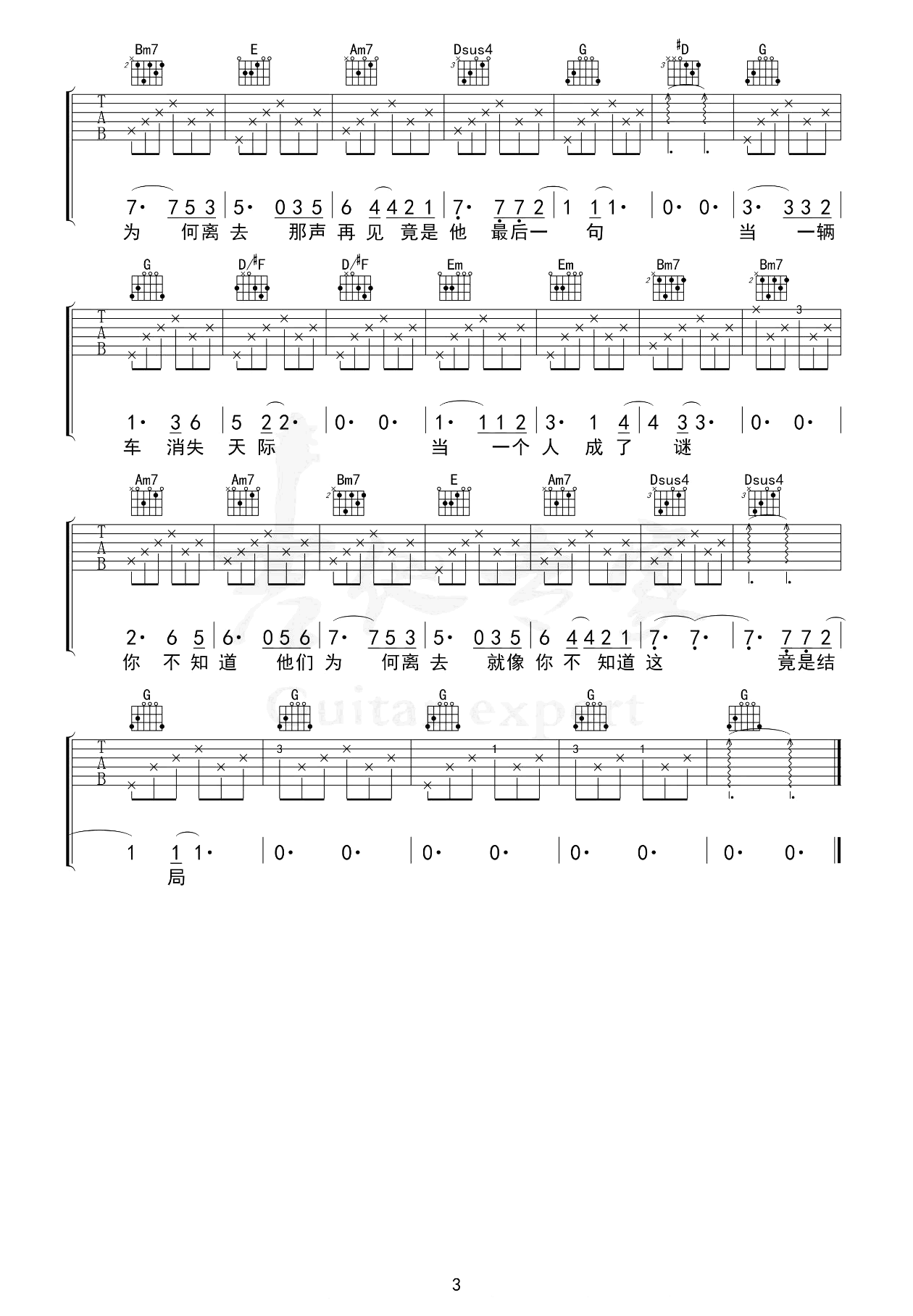 邓紫棋《后会无期》吉他谱,采用G调指法编配,共有3张高清图谱。后会无期吉他谱,邓紫棋演唱,附吉他弹唱教学视频。《后会无期》吉他弹唱谱,原调为bB调,选用G调和弦指法编配,完整版六线谱共三张图片,感谢吉他专家扒谱出品,曲谱宝更新上传。 时间无法停止,脚步无法停下,这个就是人生的一种魅力吧。我们都在表达想永远的拥有的,但是我们能拥有的就是失去。所以才美丽,所以才留恋,所以才珍惜。