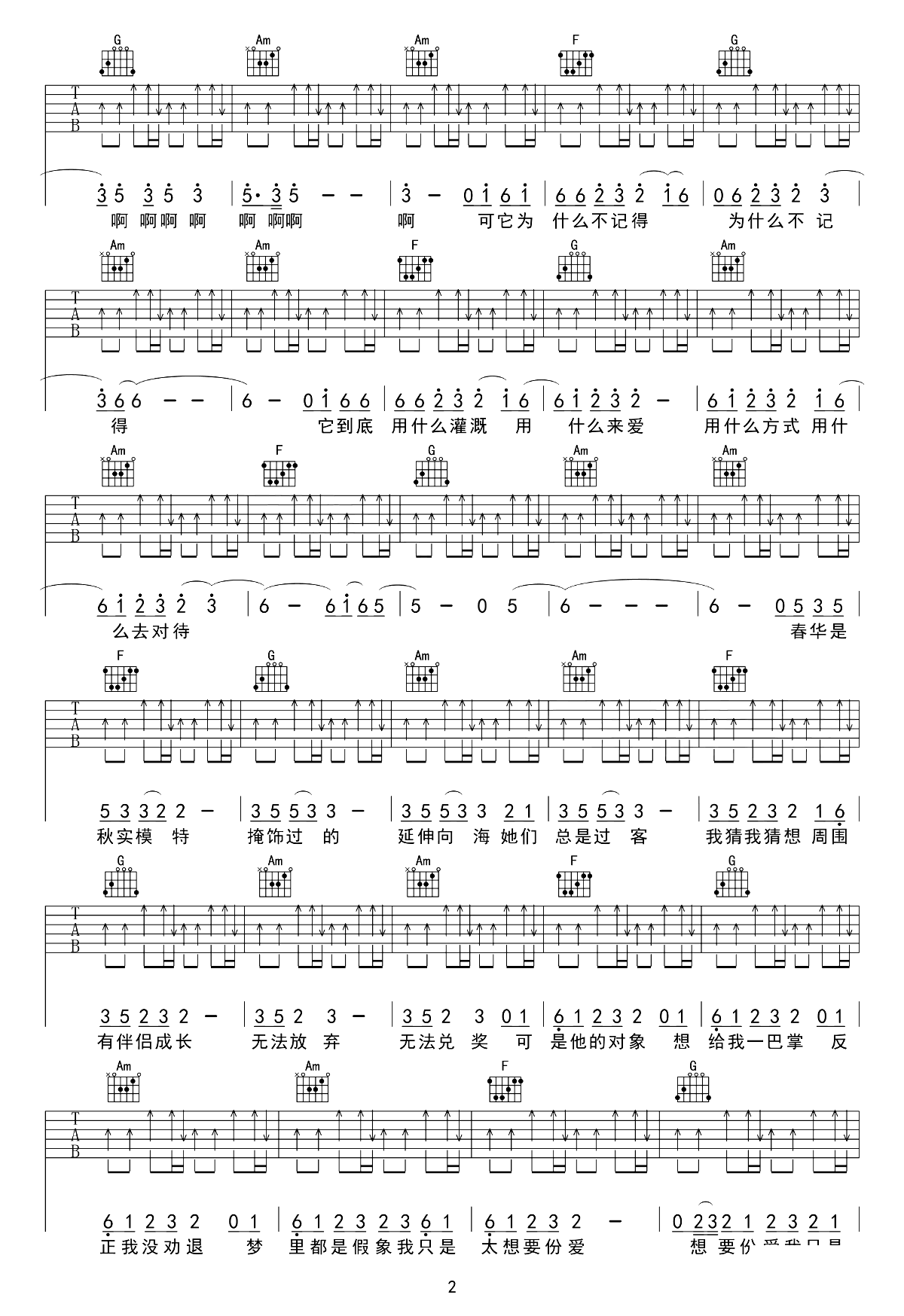 - 侃侃《爱情啊》吉他谱 - 非常多人都在弹的版本