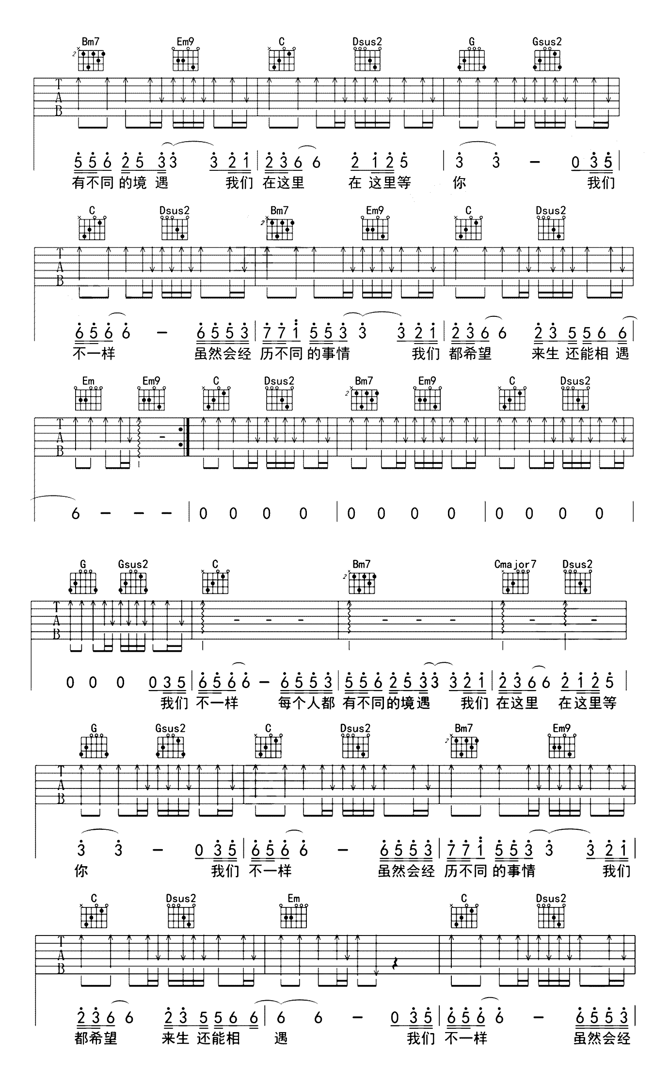 大壮 《我们不一样》吉他谱 - 好听到爆炸