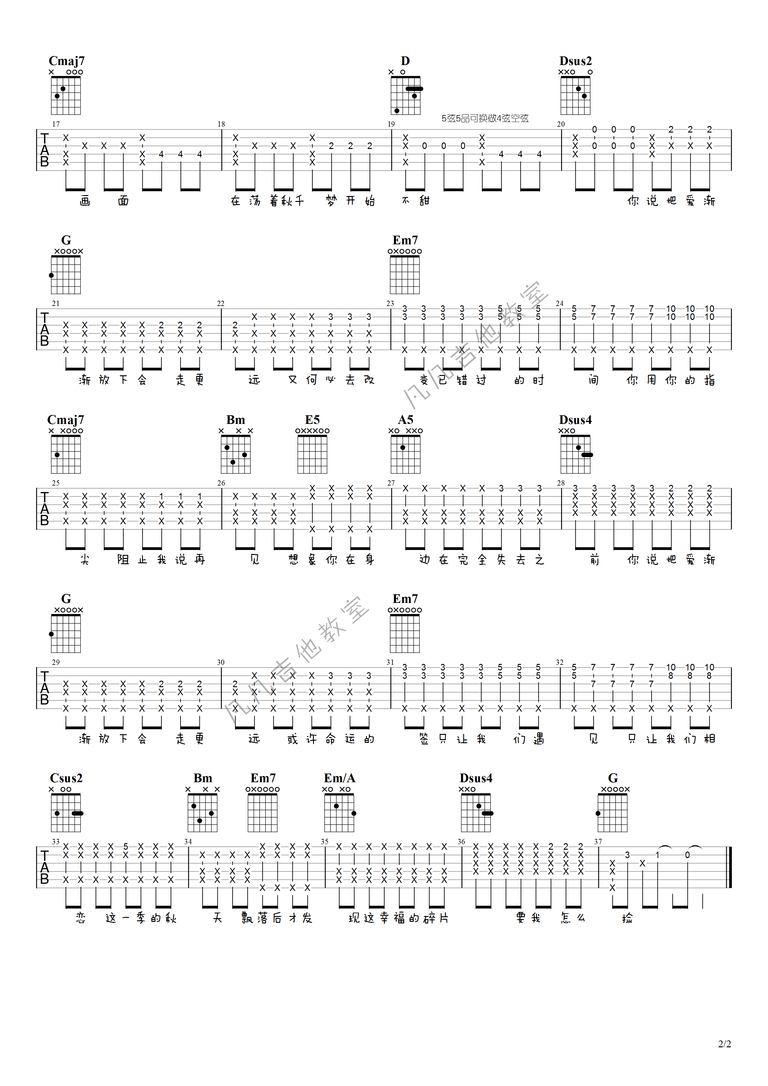 - 周杰伦《烟花易冷》吉他谱 - 完整版