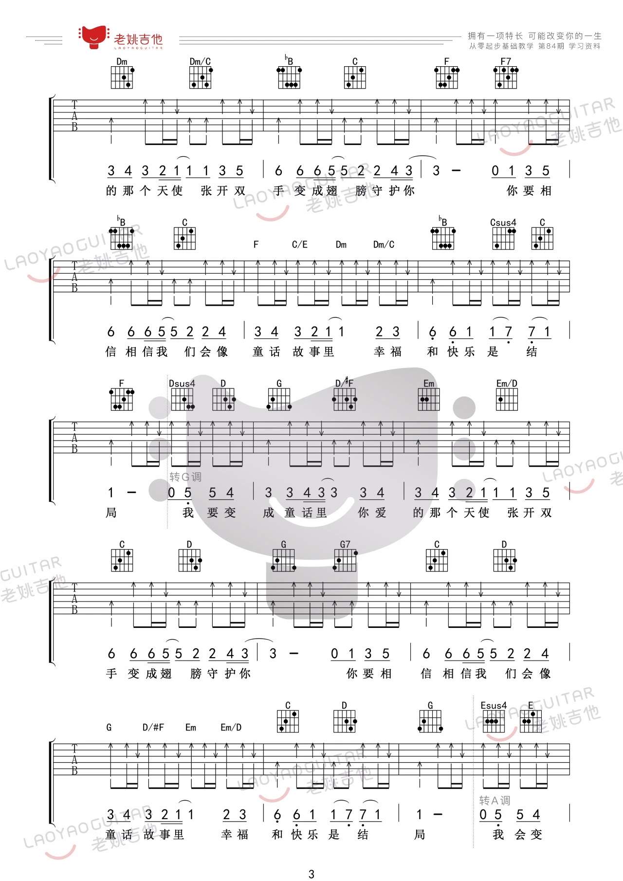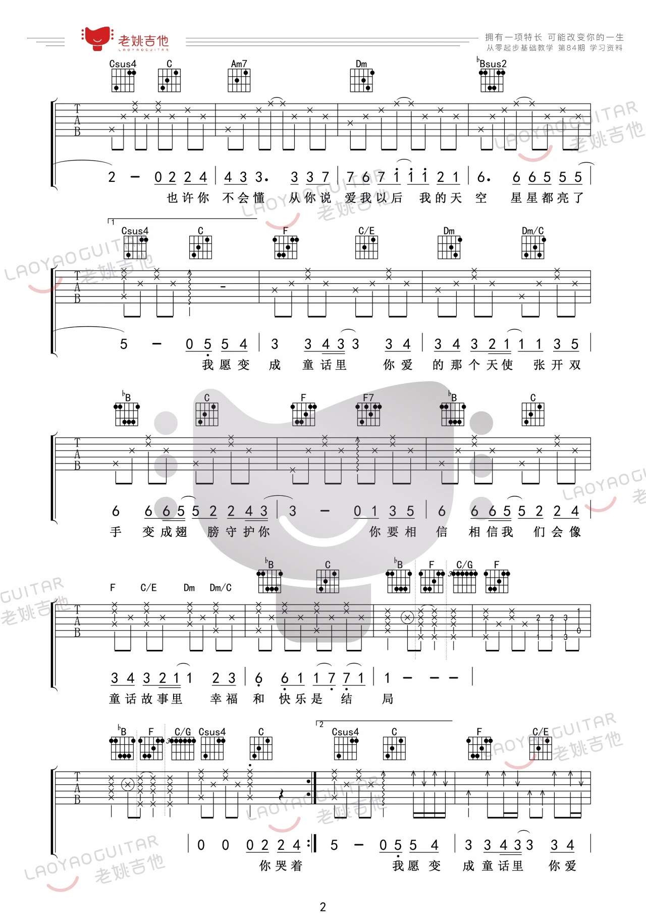 光良《童话》吉他谱,老姚吉他编配出品,共有4张高清图谱。