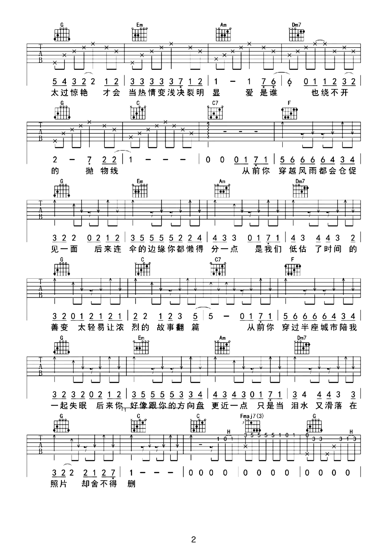 - 徐佳莹《不醉不会》吉他谱 - 免费版