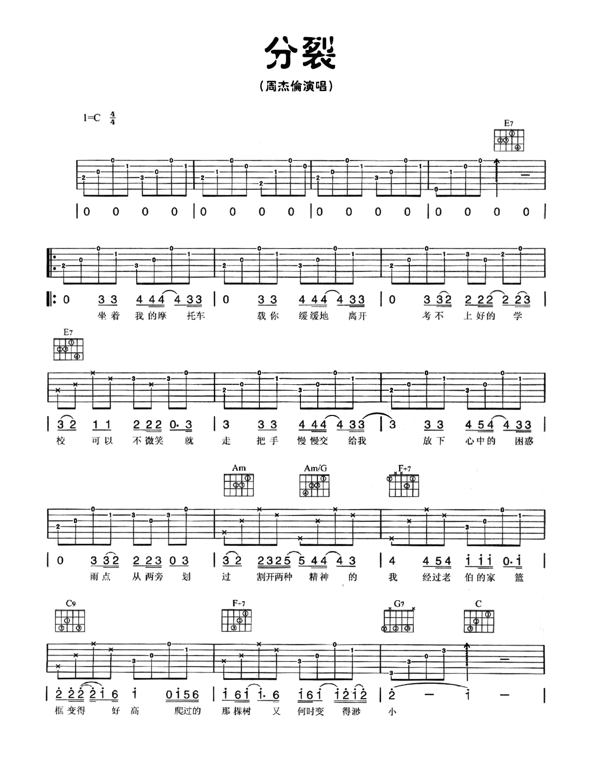 周杰伦《分裂》吉他谱 - 好听到爆炸