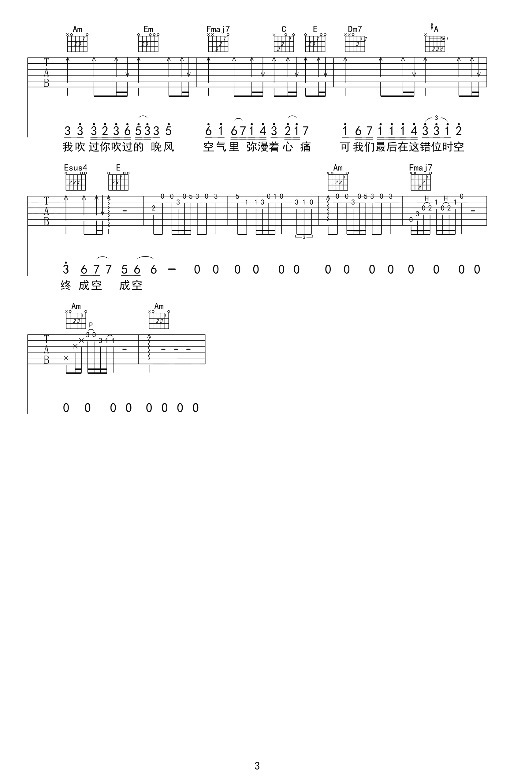 艾辰《错位时空》吉他谱,酷弹乐器编配出品,共有3张高清图谱。