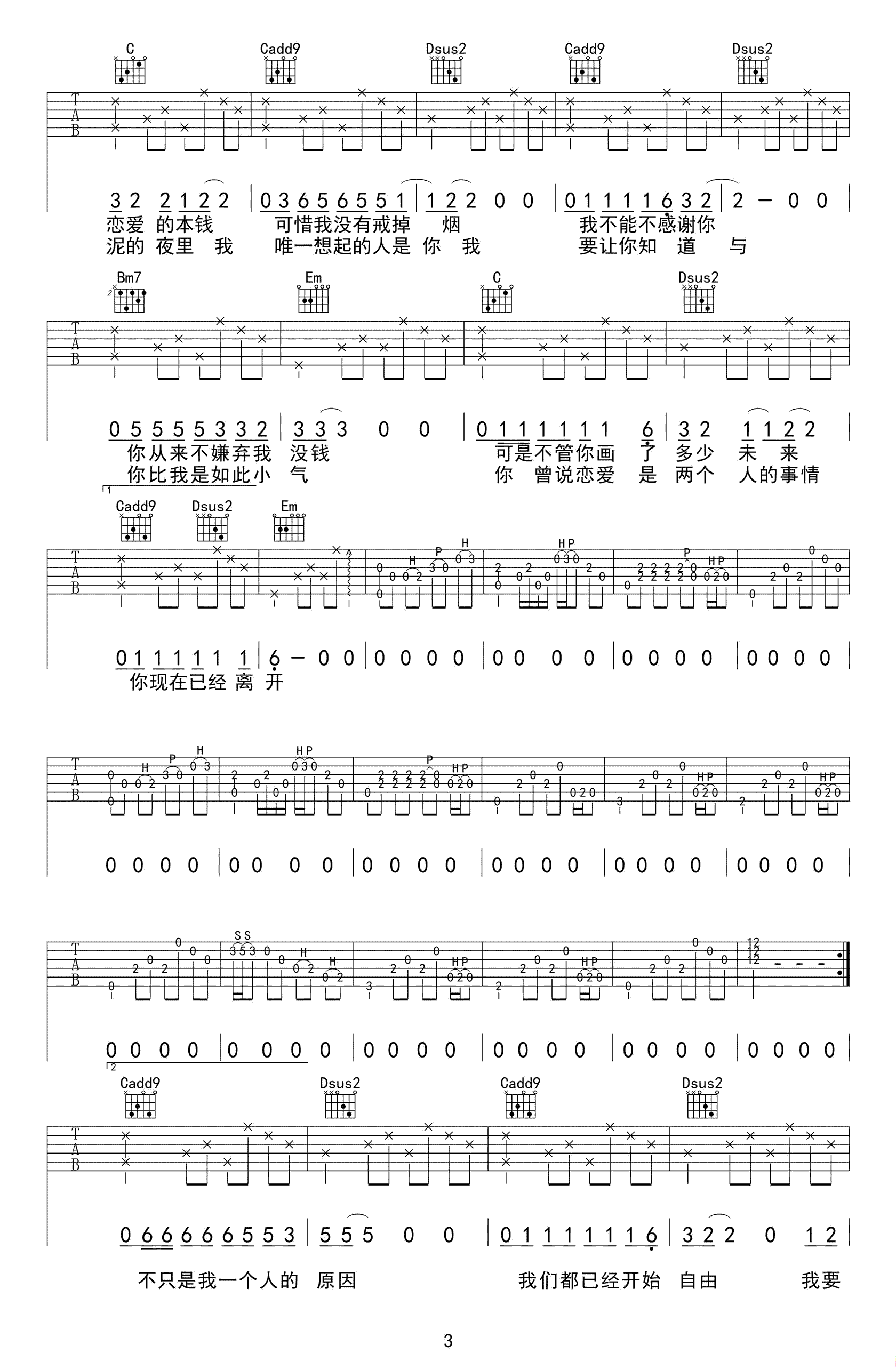 赵雷《已是两条路上的人》吉他谱