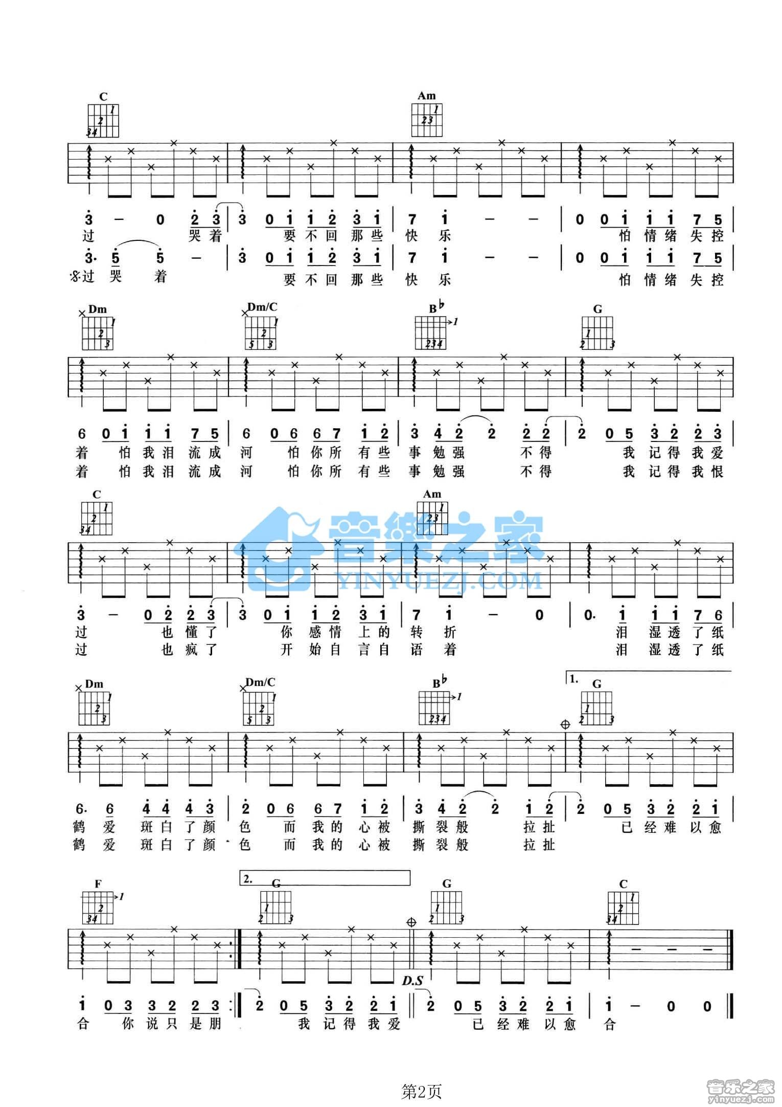 何润东《记得我爱过》吉他谱,YYZJ编配出品,共有2张高清图谱,免翻页排版设计。C调版《记得我爱过》吉他弹唱六线谱