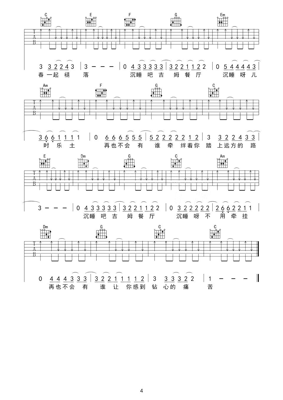 赵雷《吉姆餐厅》吉他谱,革命吉他编配出品,共有4张高清图谱。《吉姆餐厅》是赵雷于2014年10月19日发行的一张普通话专辑。该专辑共收录了10首歌曲,由StreetVoice唱片发行。专辑中词曲均由赵雷本人完成。