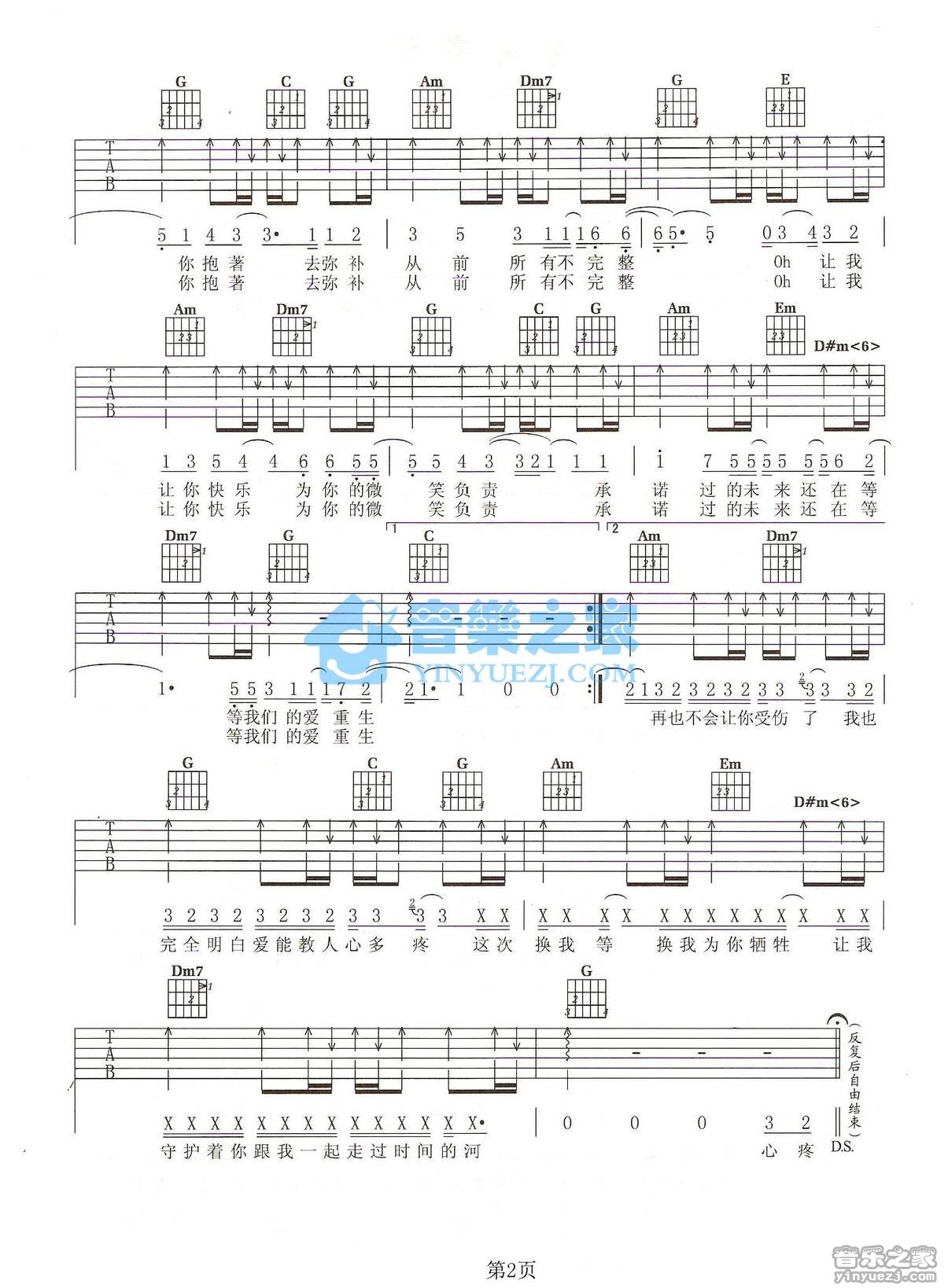 飞轮海《心疼你的心疼》吉他谱,共有2张高清图谱,免翻页排版设计。C调版飞轮海《心疼你的心疼》吉他弹唱六线谱