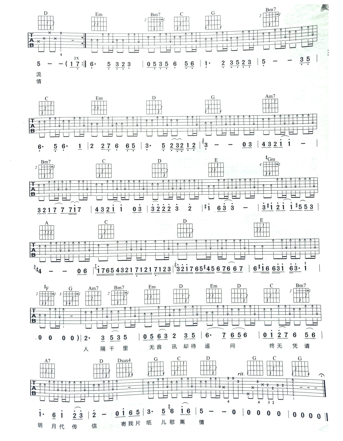 唐朝乐队《明月千里寄相思》吉他谱 - 小编推荐练习