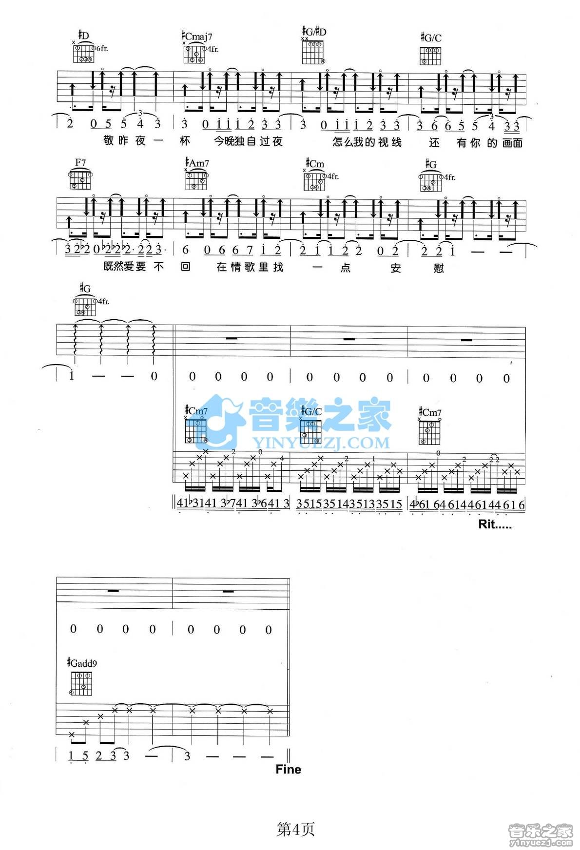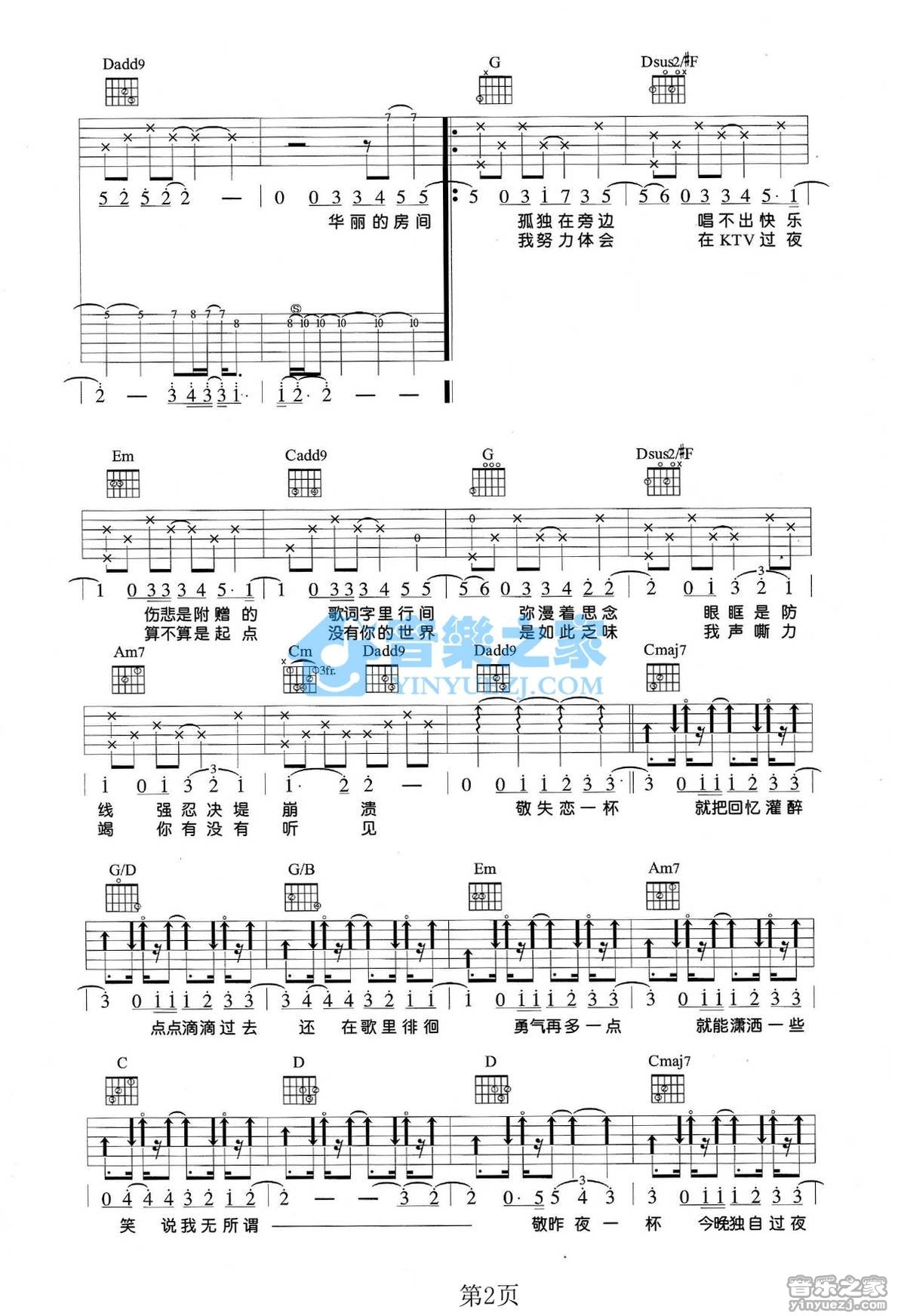 张智成《在KTV过夜》吉他谱,共有4张高清图谱。G转#G调版 张智成《在KTV过夜》吉他弹唱六线谱