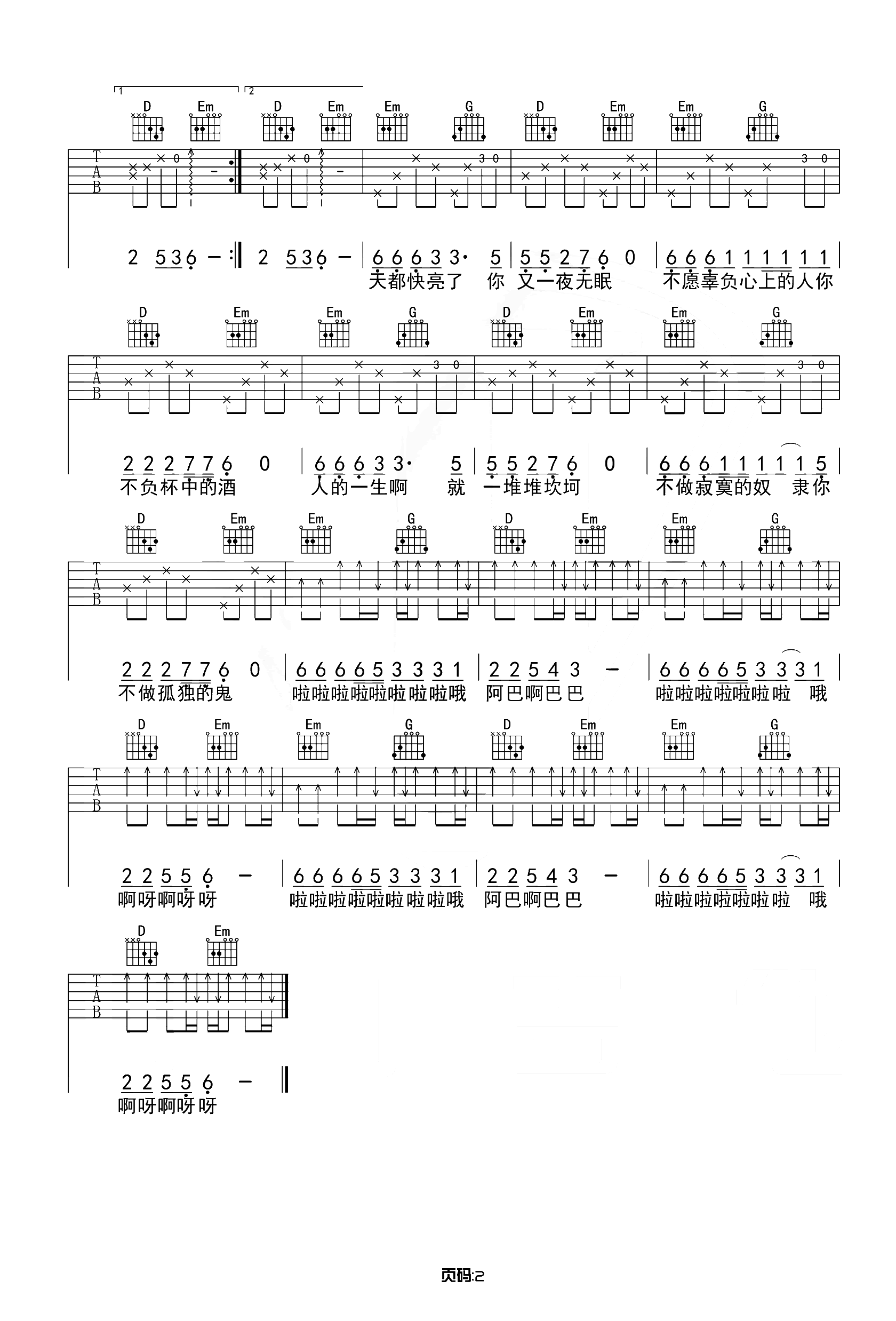 海来阿木《点歌的人》吉他谱,山山吉他编配出品,共有2张高清图谱,免翻页排版设计。编配有前奏间奏,歌曲原调降B选调G,变调夹夹三品。点歌的人六线谱,最近,抖音上这首《点歌的人》火了,这首歌是由四川彝族歌手海来阿木演唱的原创歌曲,歌词虽然不多,但是唱出了很多心酸过往,喜欢这首歌的朋友们可以拿起吉他谱练起来啦~