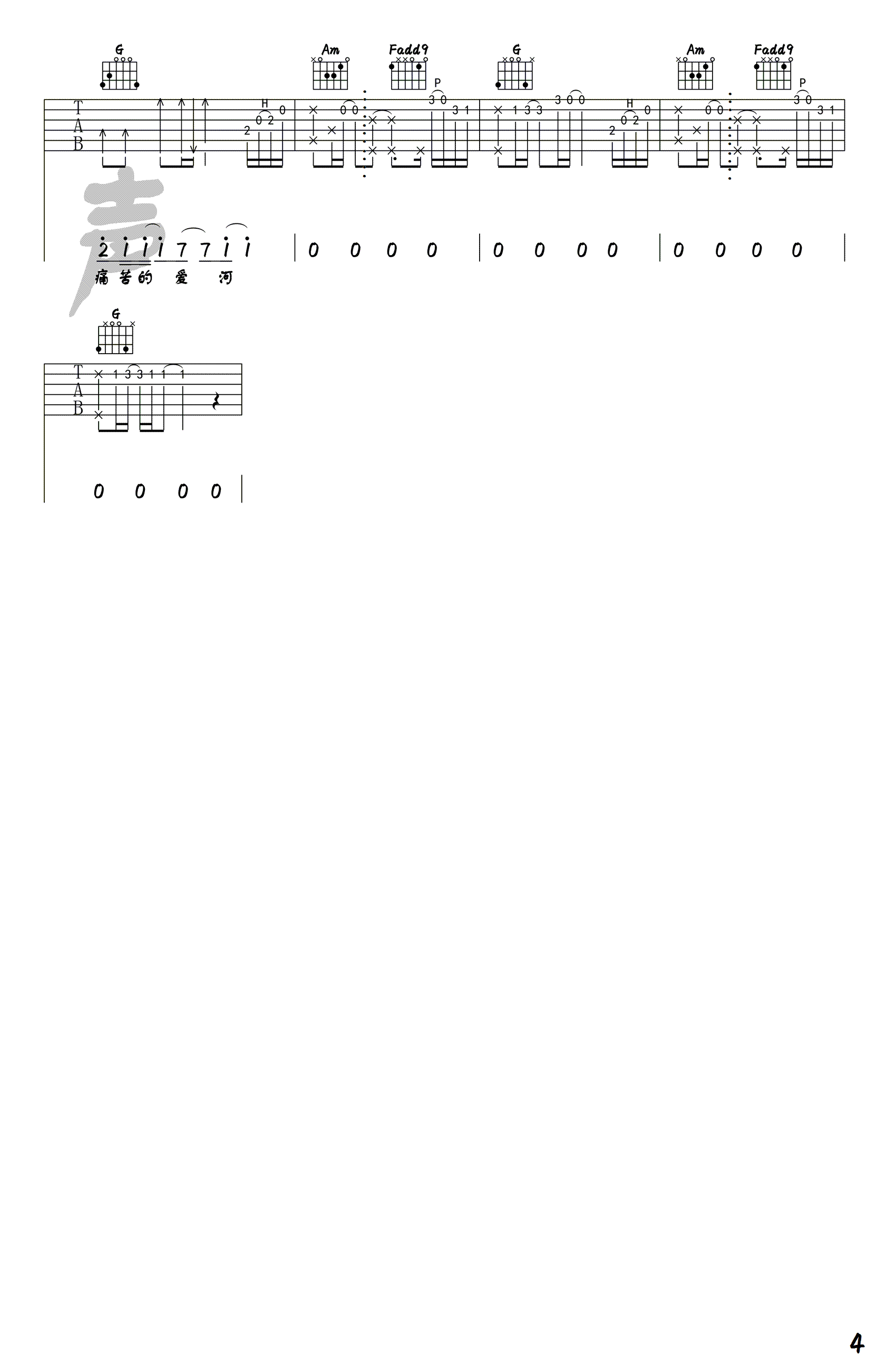 蒋雪儿《爱河》吉他谱,声线光影编配出品,共有4张高清图谱。蒋雪儿《爱河》吉他谱,歌曲原调B,选用C调指法编配,吉他降半音调弦。这首歌曲的前奏比较难,大家参照视频讲解认真练习。