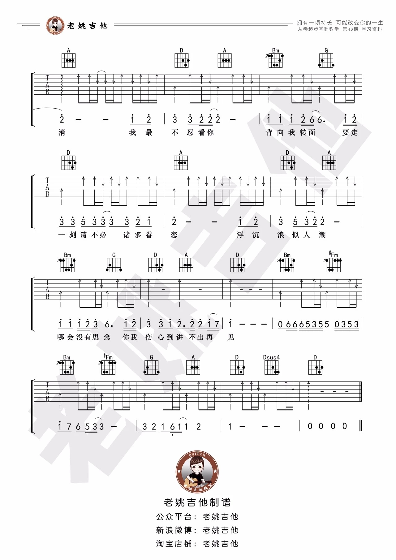 谭咏麟《讲不出再见》吉他谱,老姚吉他编配出品,共有2张高清图谱,免翻页排版设计。