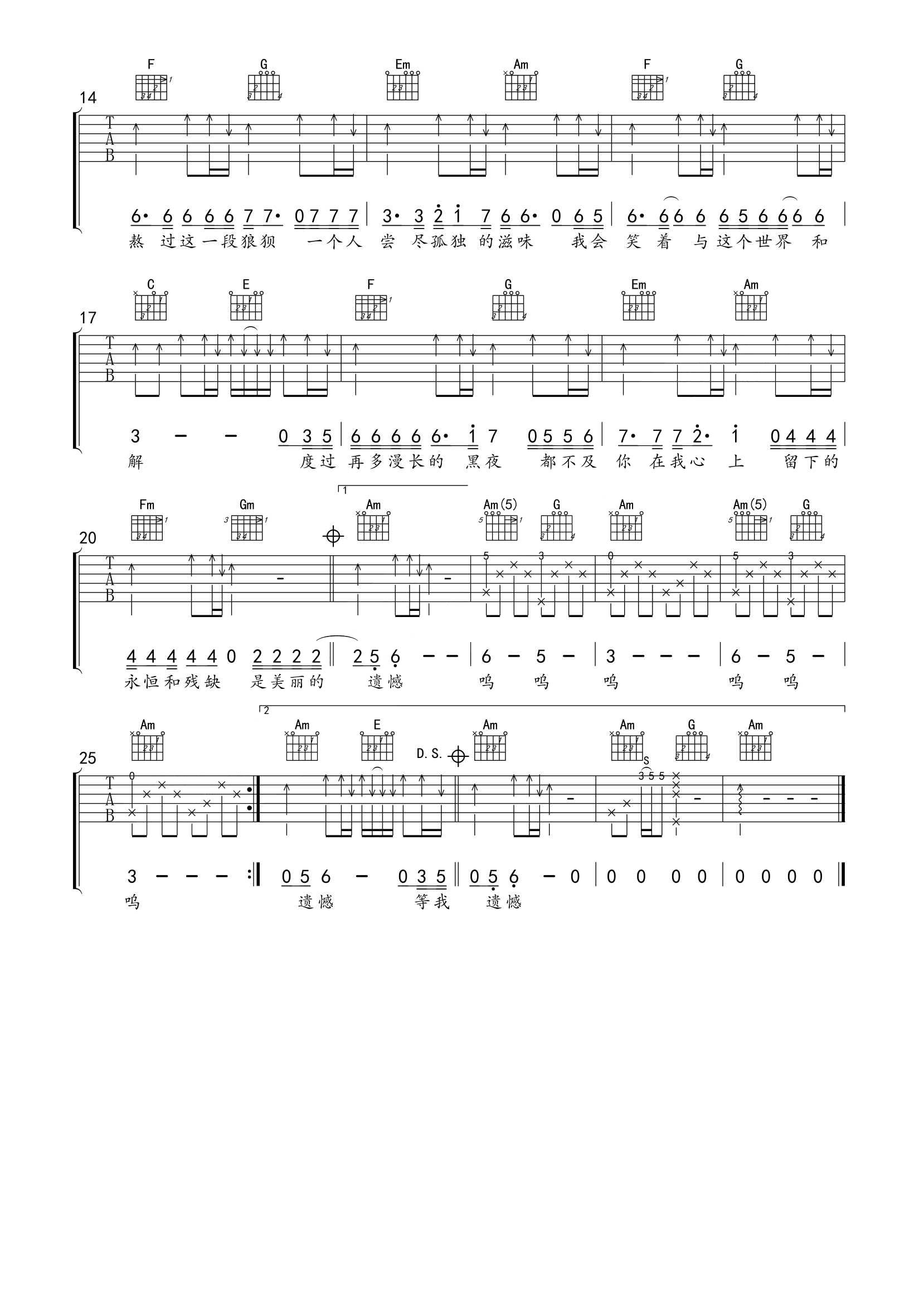 平凡的艾岩《美丽的遗憾》吉他谱,共有2张高清图谱,免翻页排版设计。