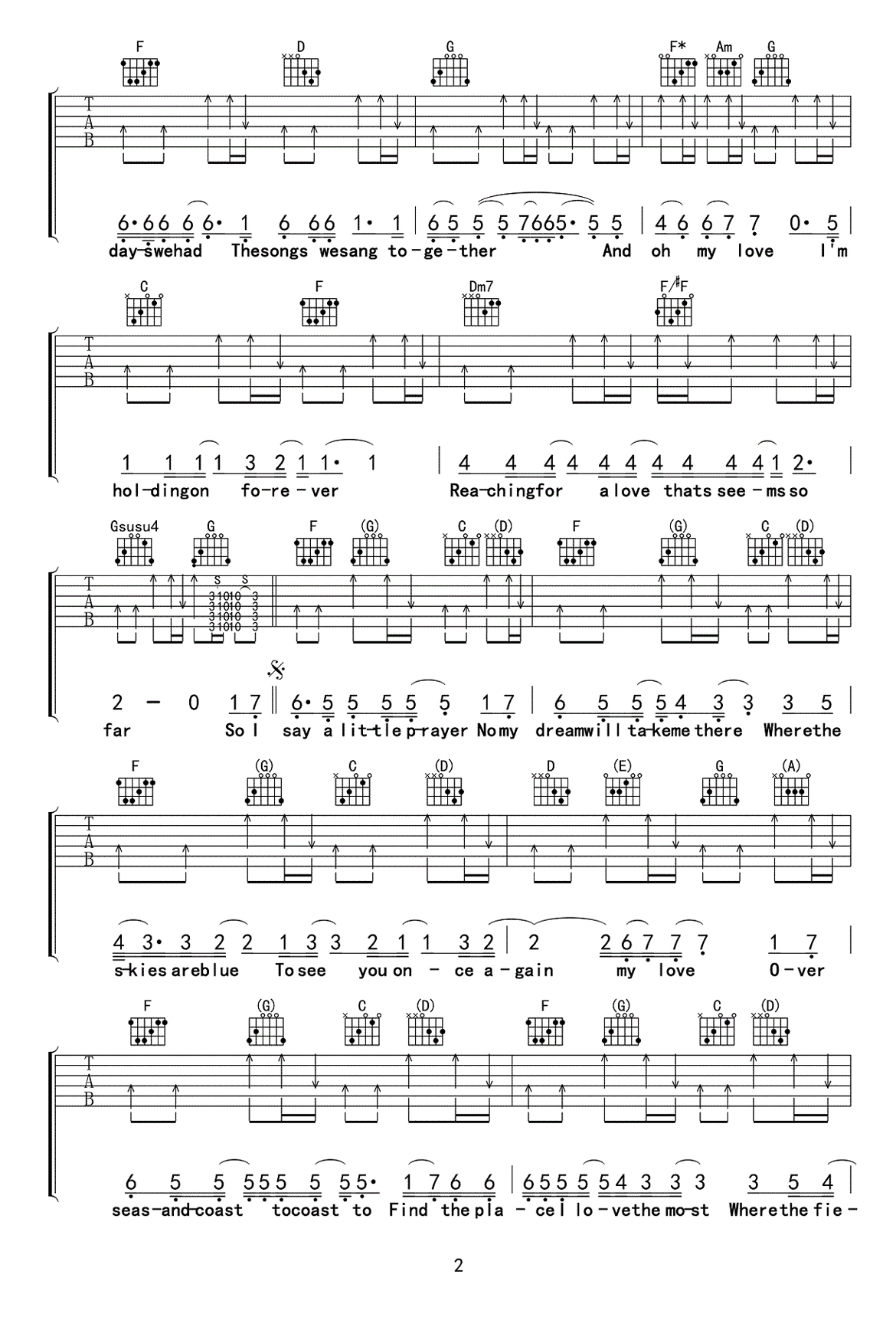 西城男孩《MY LOVE》吉他谱,王飞/午夜编配出品,共有3张高清图谱。西城男孩一首深情演绎的情歌,吉他谱为图片档六线谱TAB格式,原调C转D调