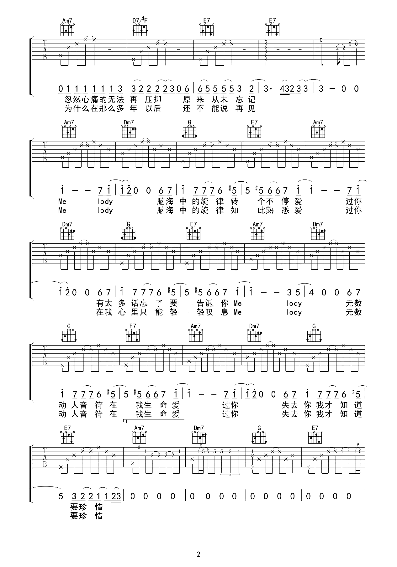 Melody吉他谱_陶喆_C调原版_完整弹唱六线谱