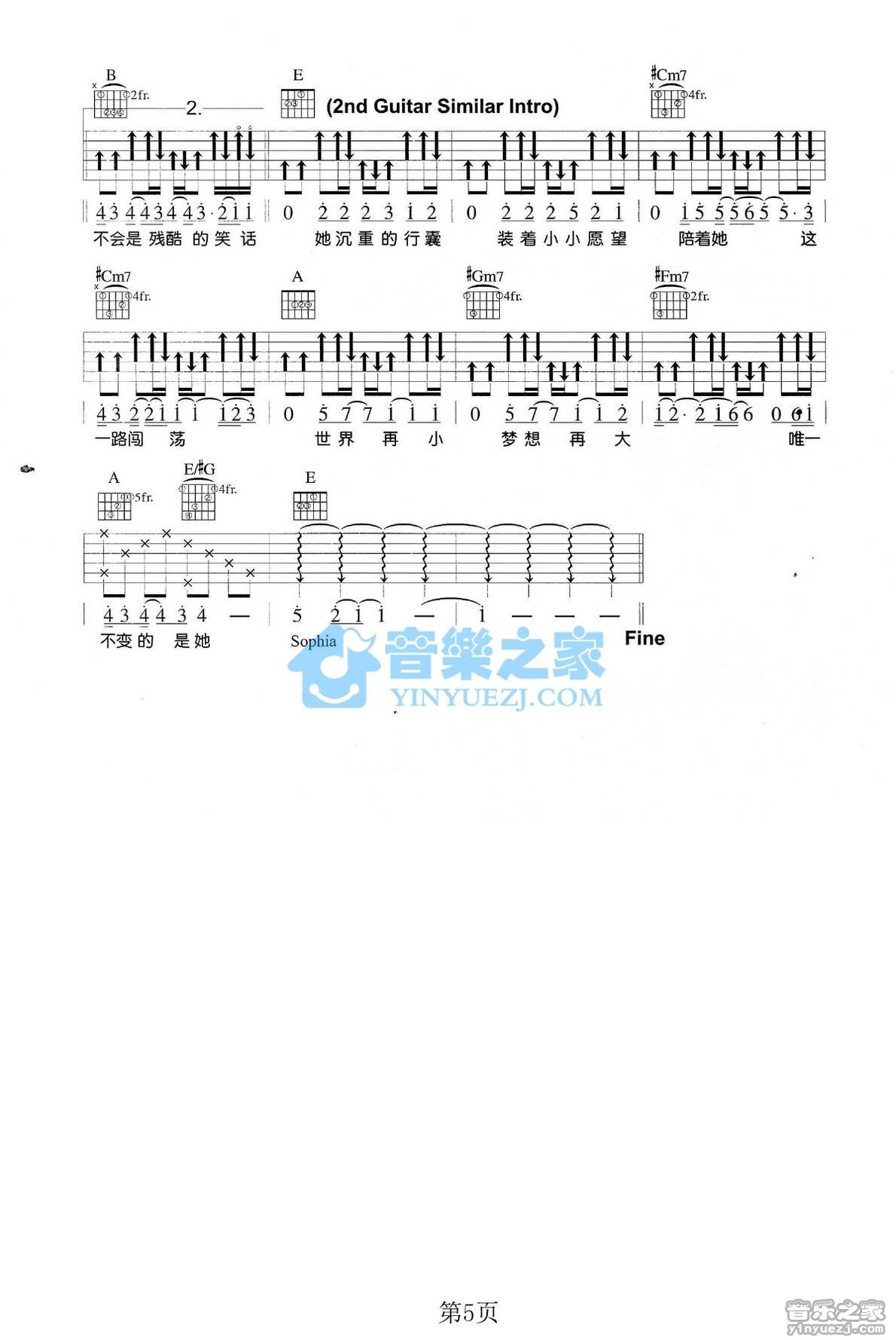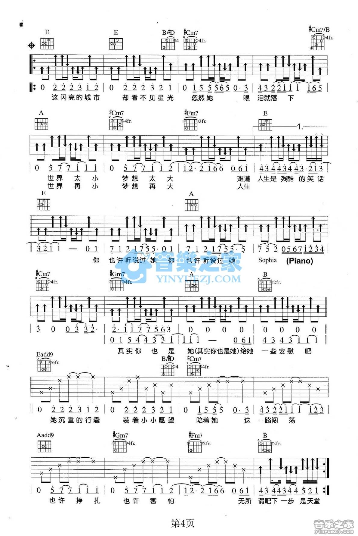 JS《苏菲亚的愿望》吉他谱,共有5张高清图谱。E调版 JS《苏菲亚的愿望》吉他弹唱六线谱
