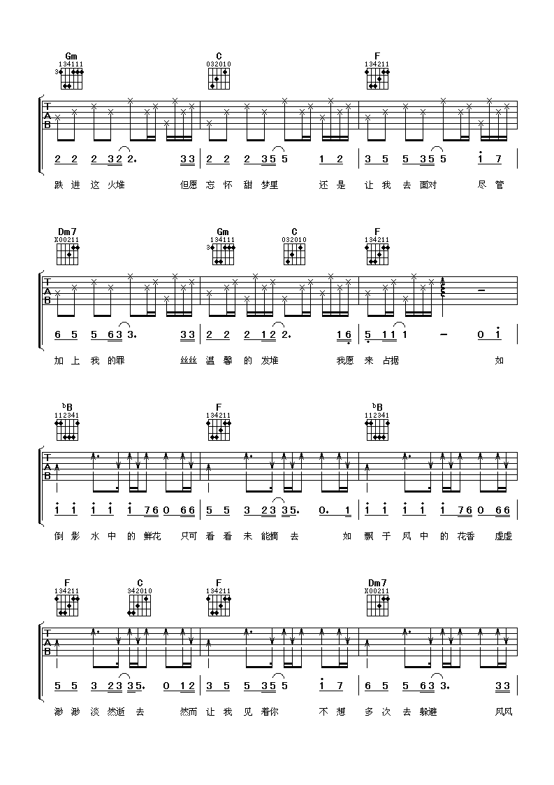 - 谭咏麟《水中花》吉他谱 - 非常多人都在弹的版本
