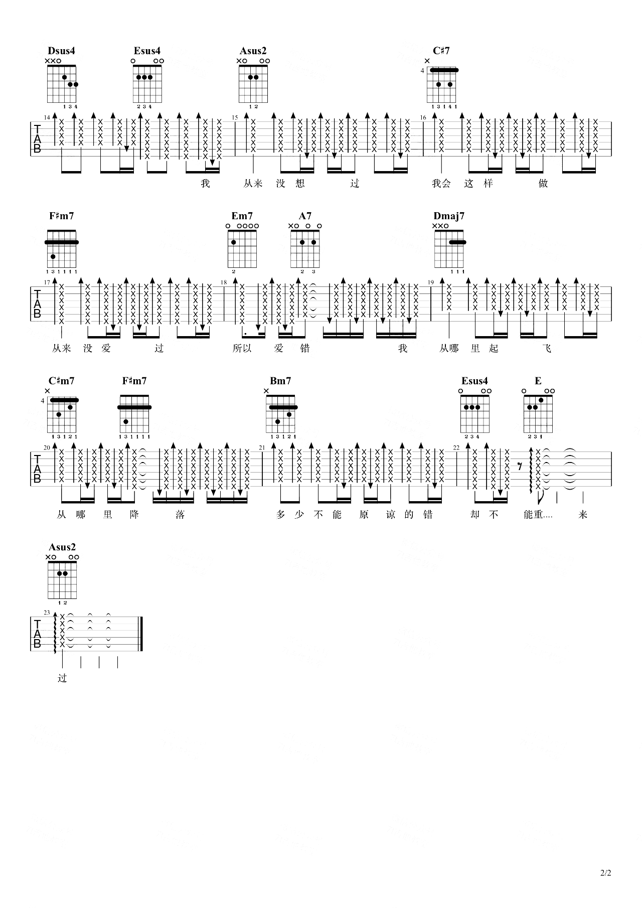 - 王力宏《白纸》吉他谱 - 非常多人都在弹的版本