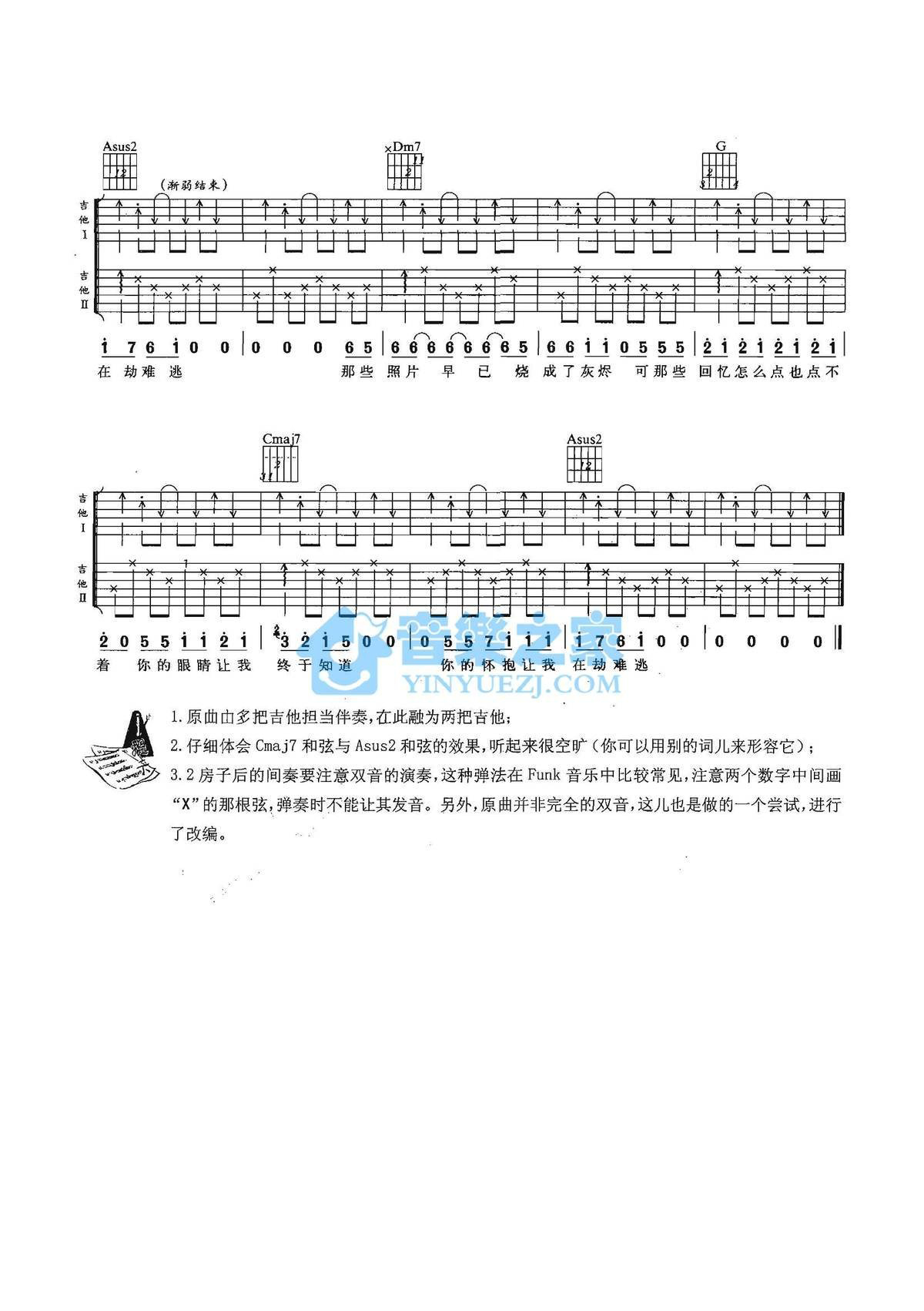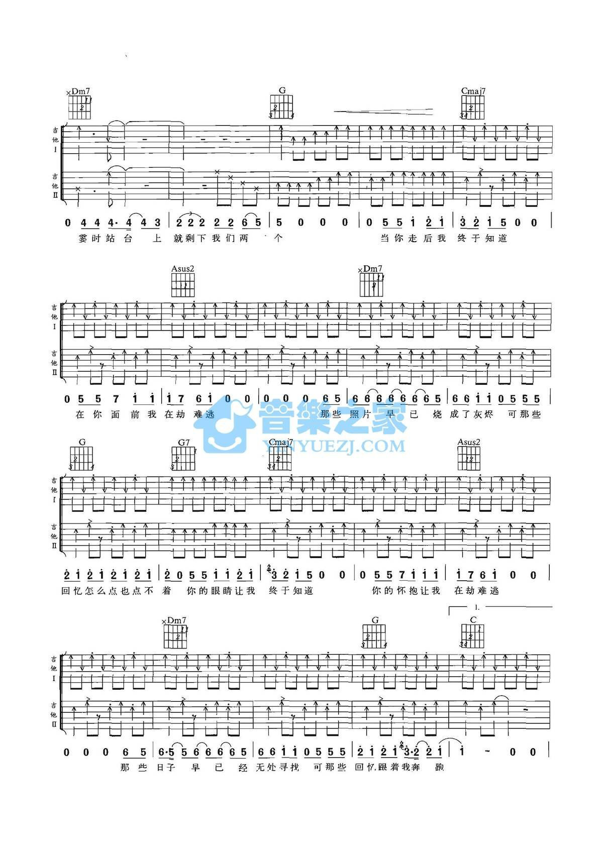 老狼《情人劫》吉他谱,共有5张高清图谱。C调双吉他版老狼《情人劫》吉他弹唱六线谱