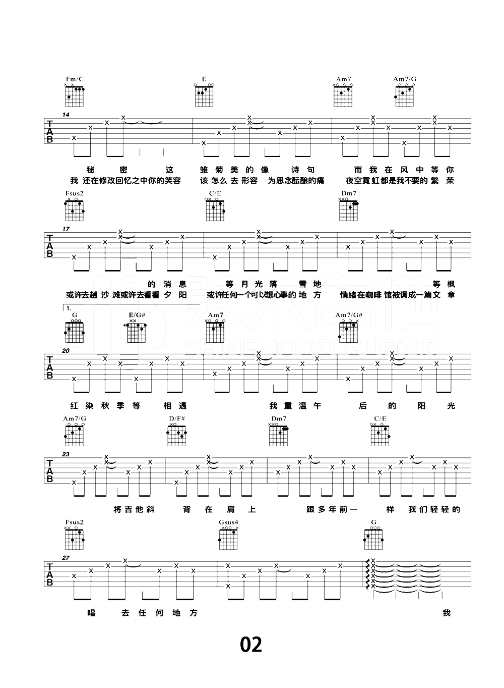 - 周杰伦《七里香》吉他谱 - 小编推荐练习