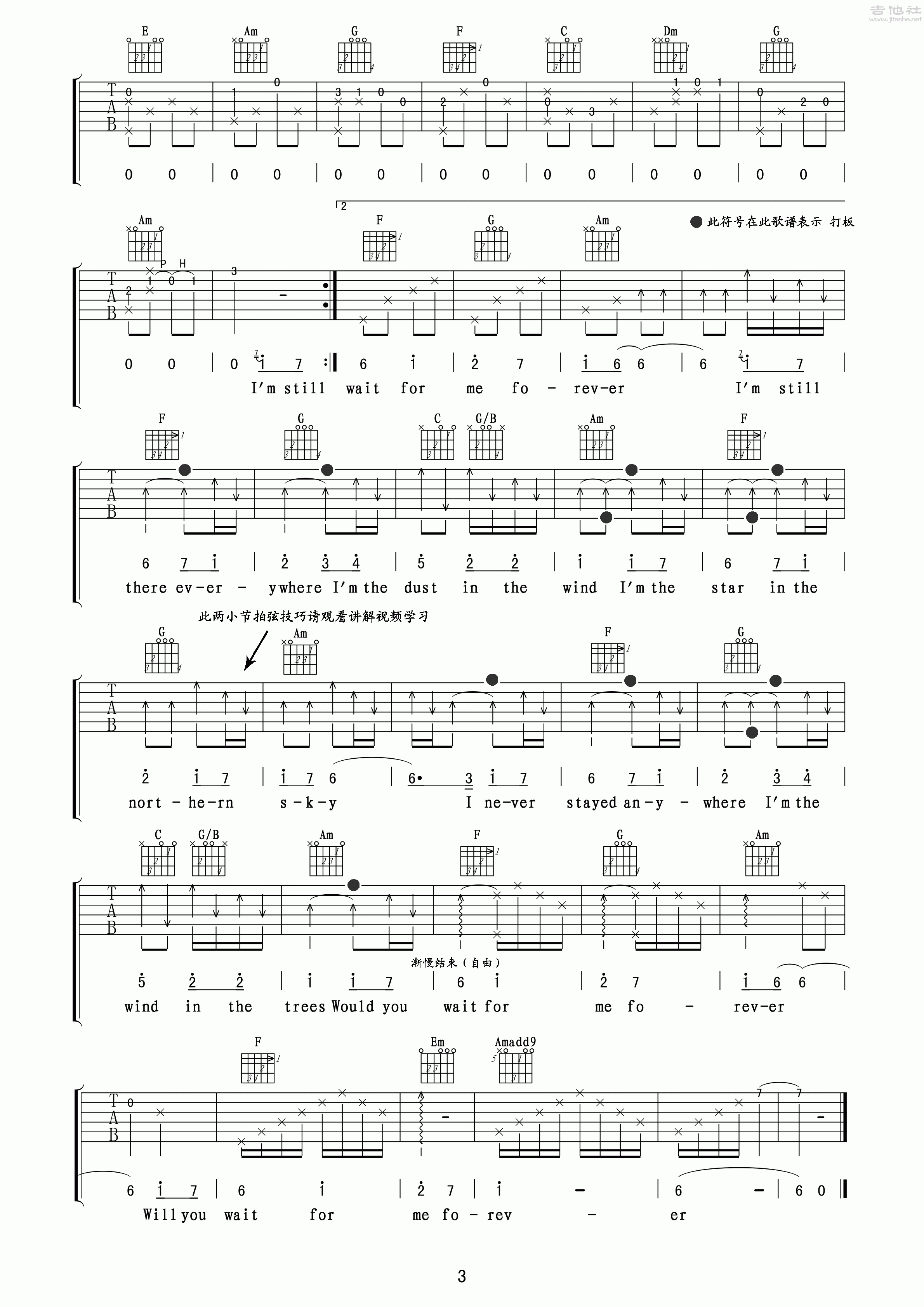 灵云乐队《Forever》吉他谱,玩易编配出品,共有3张高清图谱。