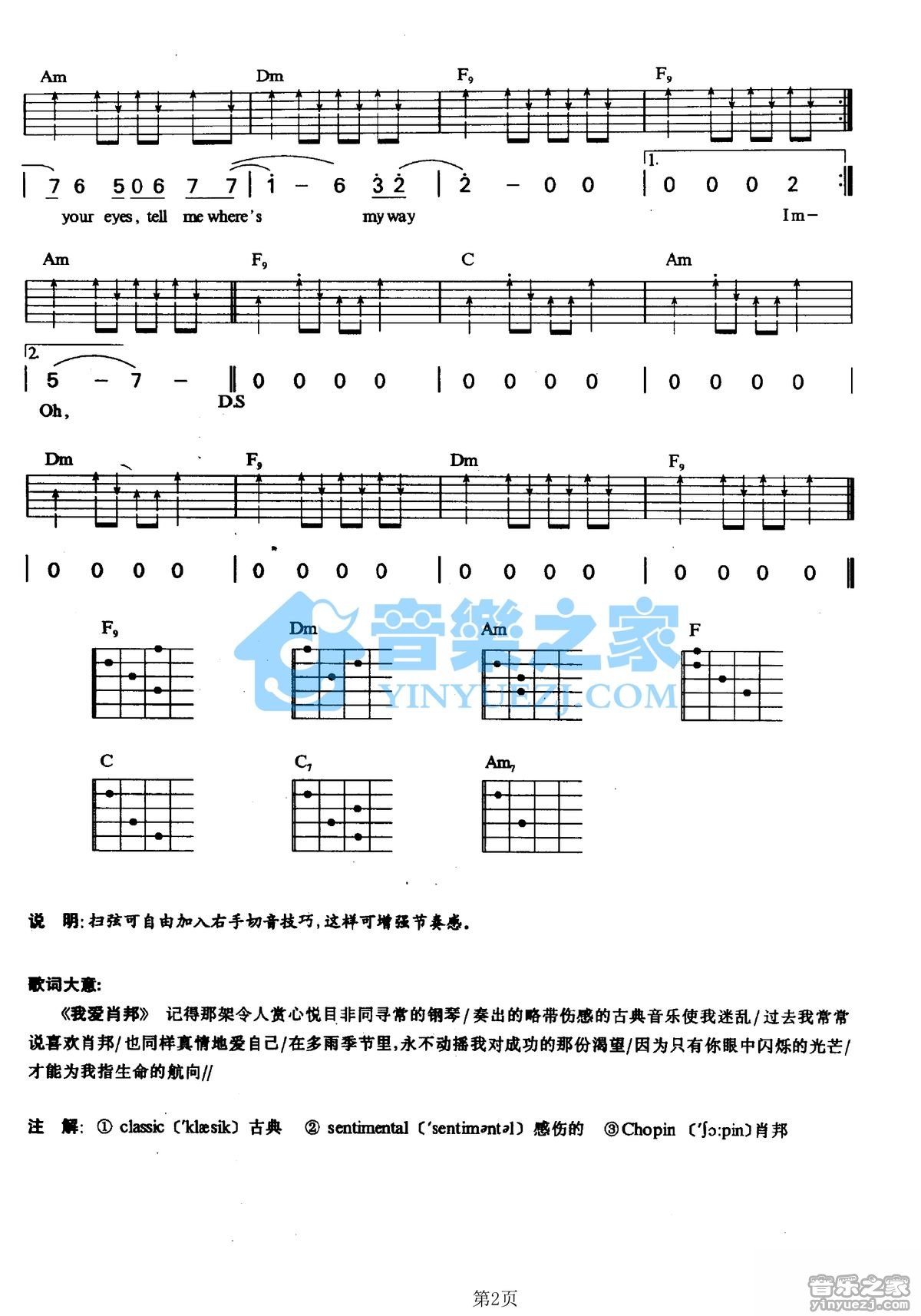 Gazebo《I Like Chopin》吉他谱,共有2张高清图谱,免翻页排版设计。F调版Gazebo《ILikeChopin》吉他弹唱六线谱