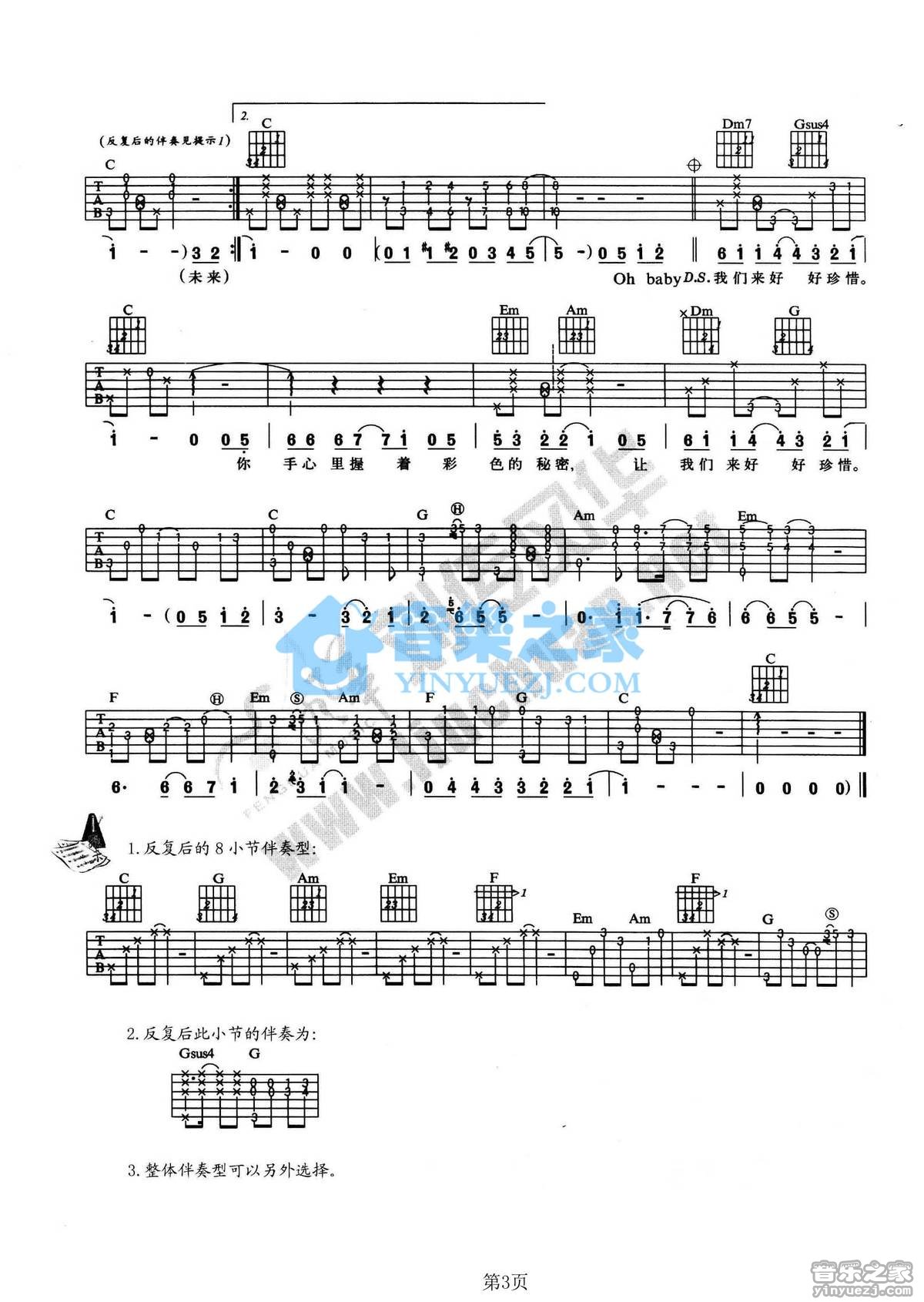 刘佳《爱很美》吉他谱,共有3张高清图谱。C调版刘佳《爱很美》吉他弹唱六线谱