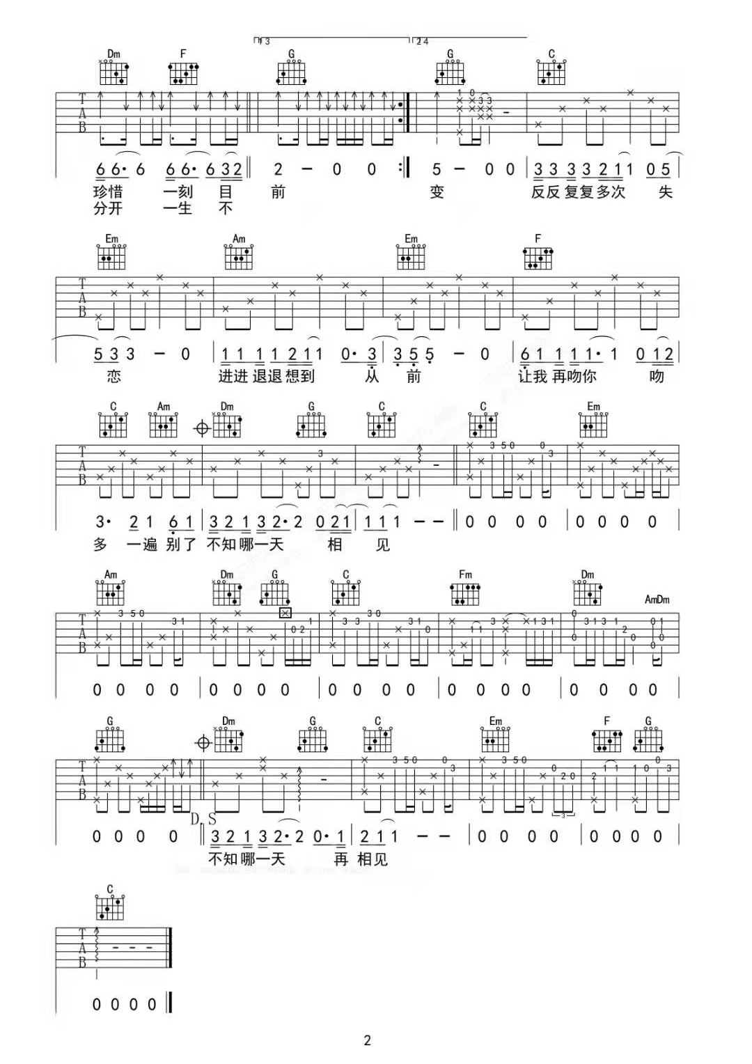 - 李克勤《一生不变》吉他谱 - 完整版