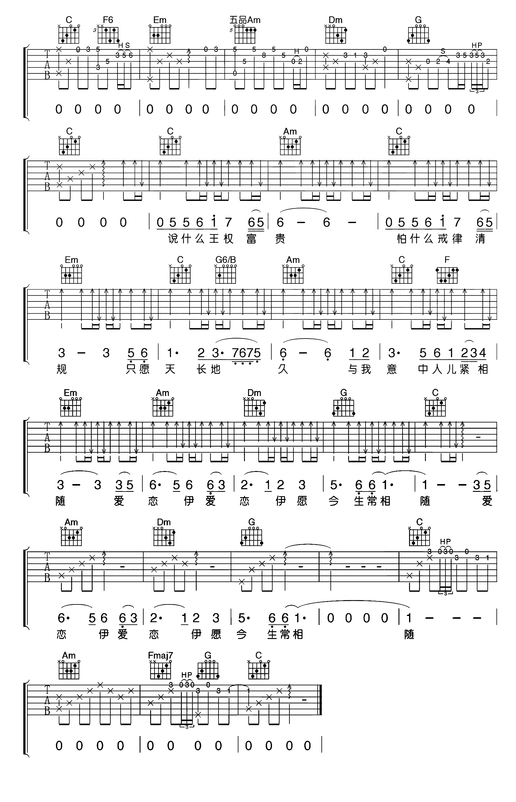 编配说明:这首歌似乎备受民谣爱好者喜爱,很多民谣歌手也都有翻唱过自己的版本!老师制作这个乐谱是自己改编的,并没有参照任何版本,前奏间奏是亮点,后段的扫弦也非常的突出气氛,整体难度不高,大家可以仔细对照视频和乐谱学习起来!难度:6级