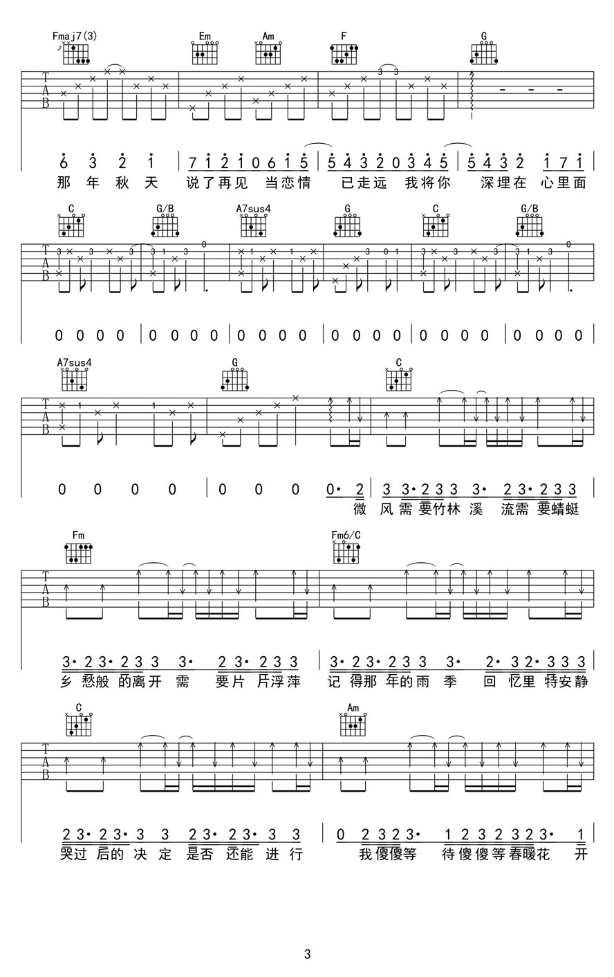 周杰伦《手写的从前》吉他谱,孙老师编配出品,共有3张高清图谱。手写的从前吉他谱,C调指法编配,周杰伦《手写的从前》六线谱,图片谱高清完整版。歌曲收录在JAY第13专辑《哎呦不错哦》里。在浓浓的纯爱抒情风的歌声里,时光倒流的回忆片段式的歌词,如同一幕幕青春剧的拼接。