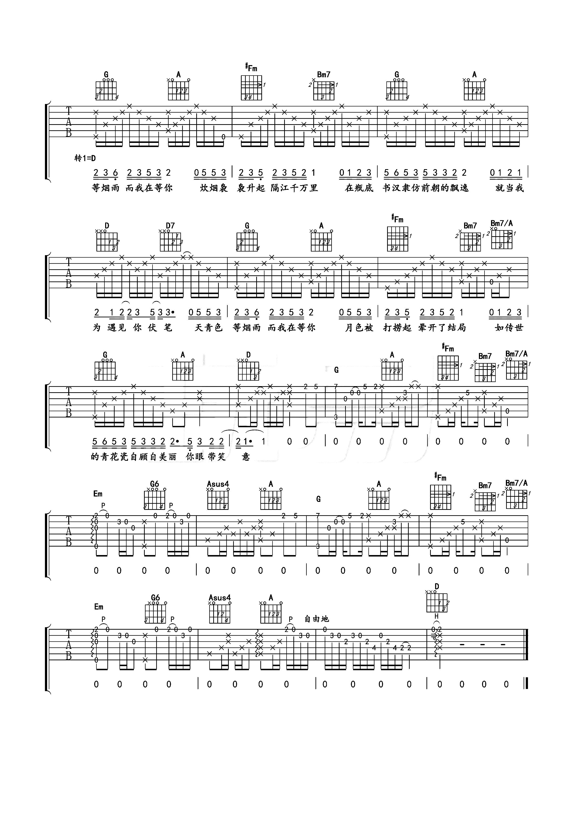 周杰伦《青花瓷》吉他谱 - 推荐版本