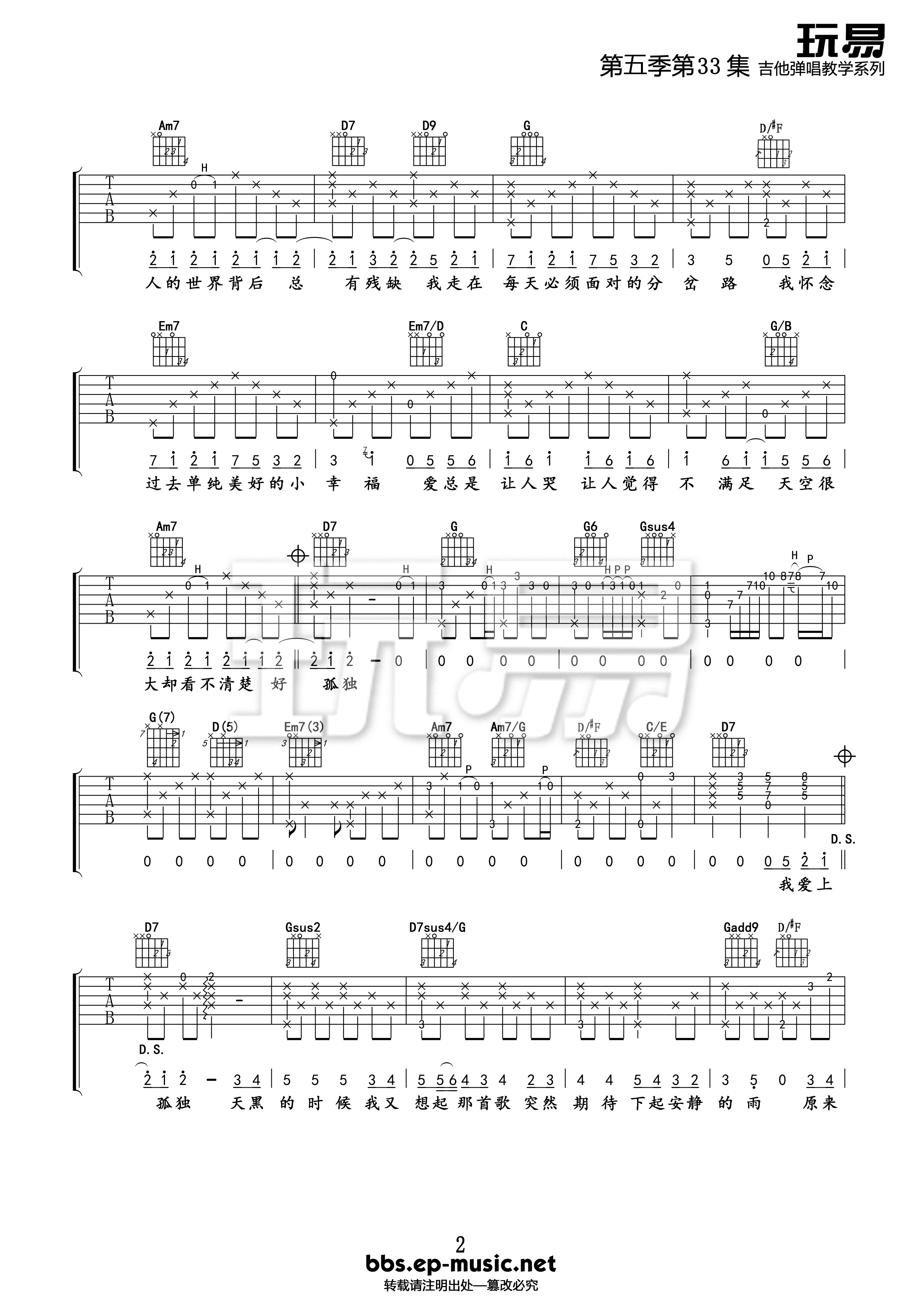 - 孙燕姿《第六感》吉他谱 - 非常多人都在弹的版本