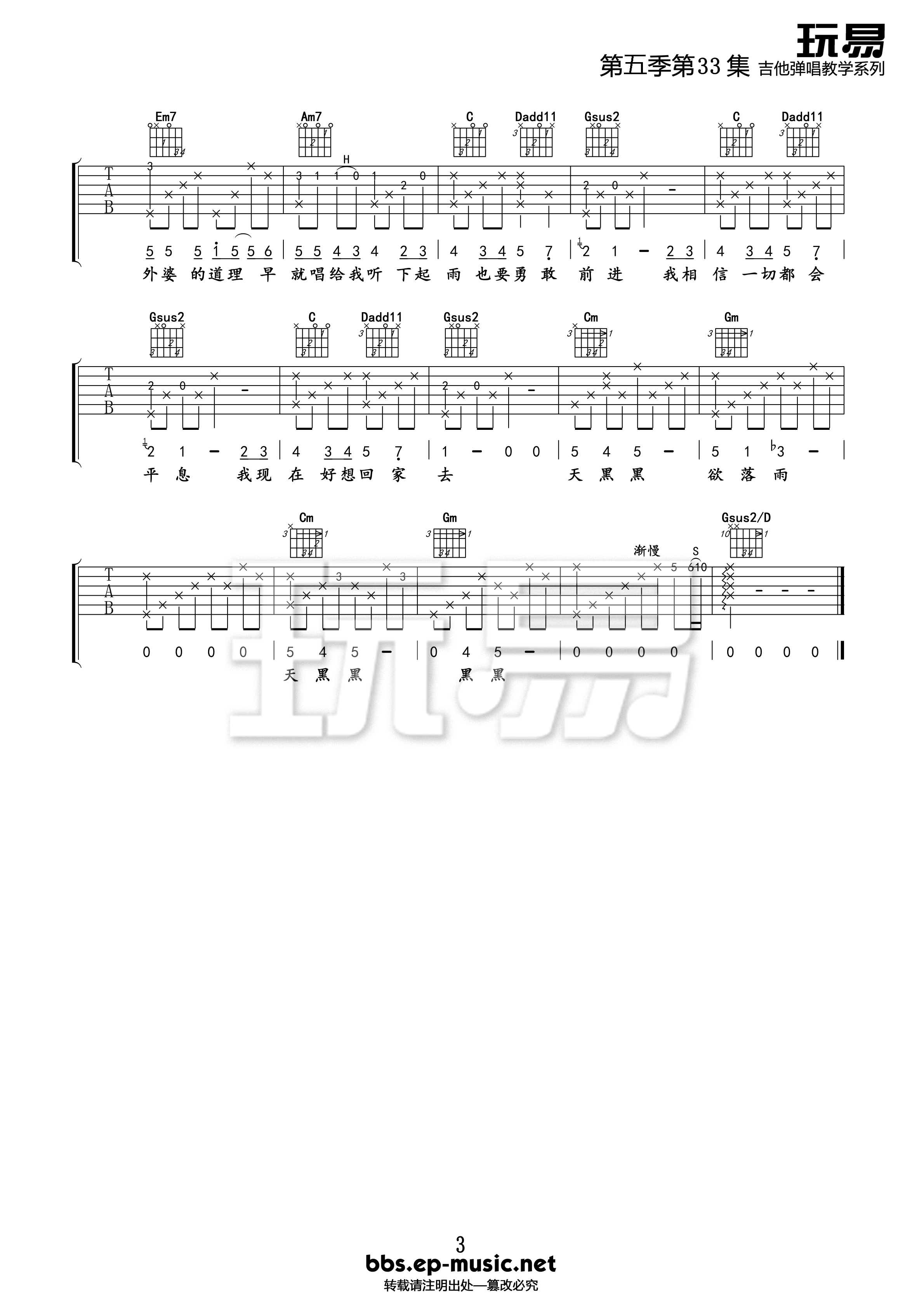 - 天黑黑吉他谱_孙燕姿_G调女生版+C调男生版_弹唱教学视频