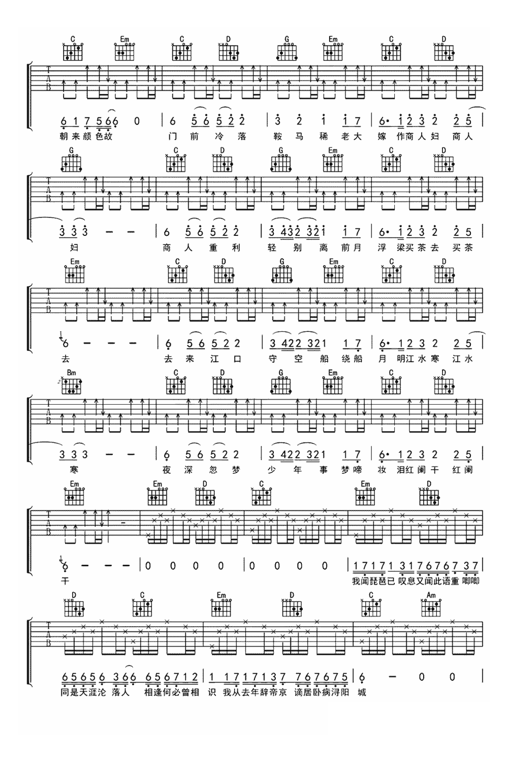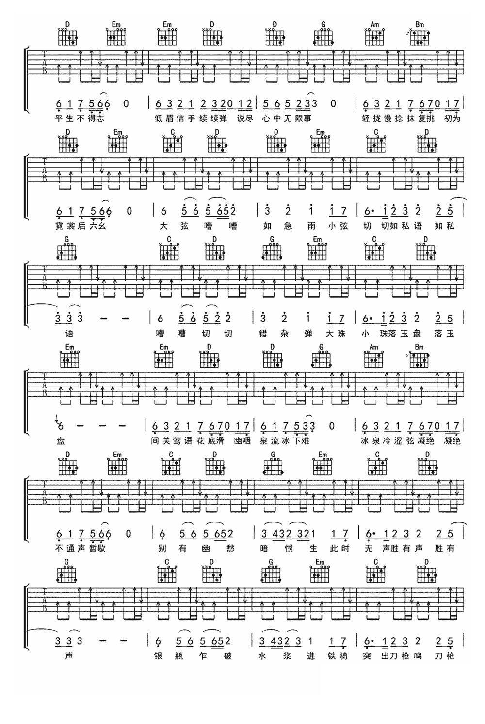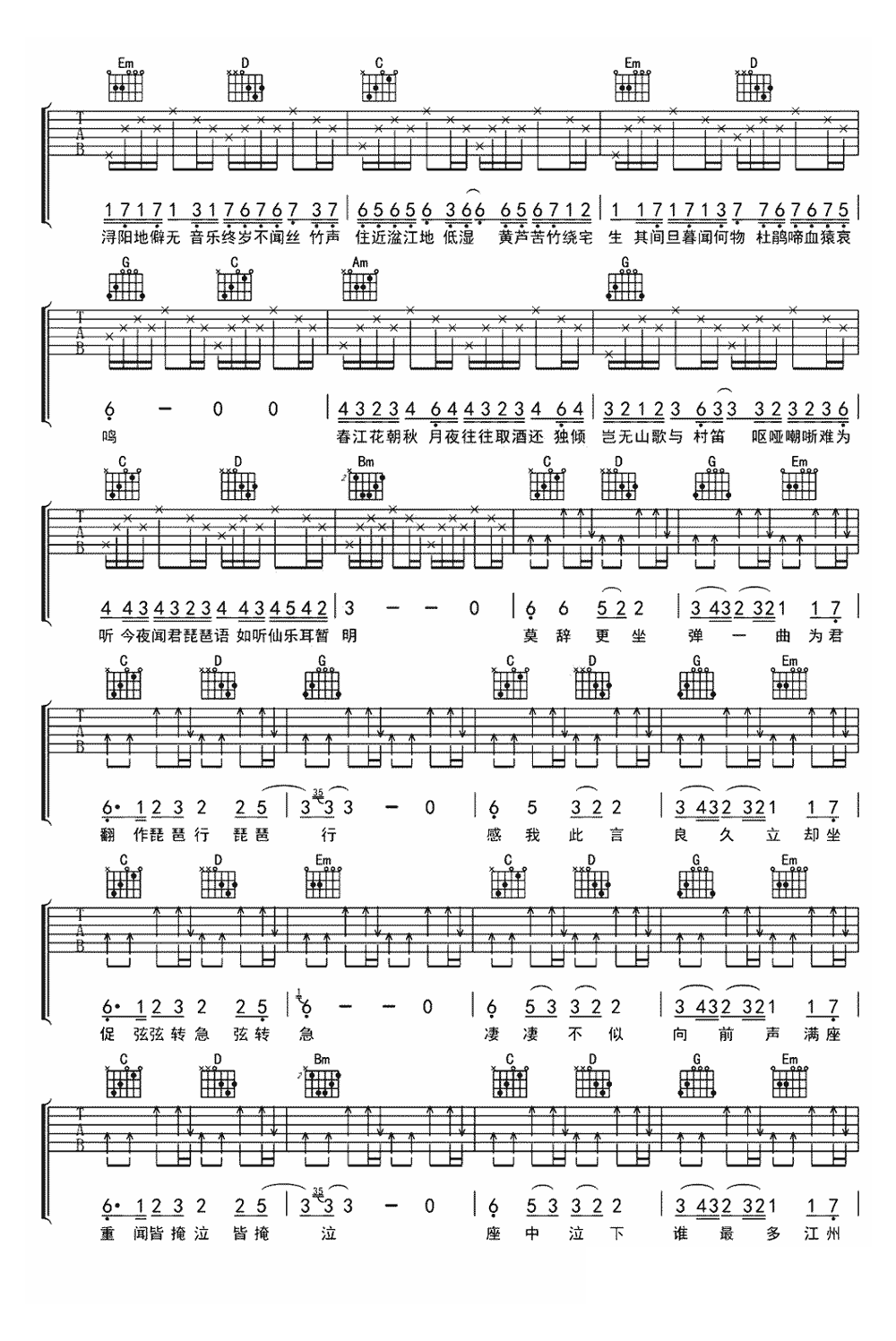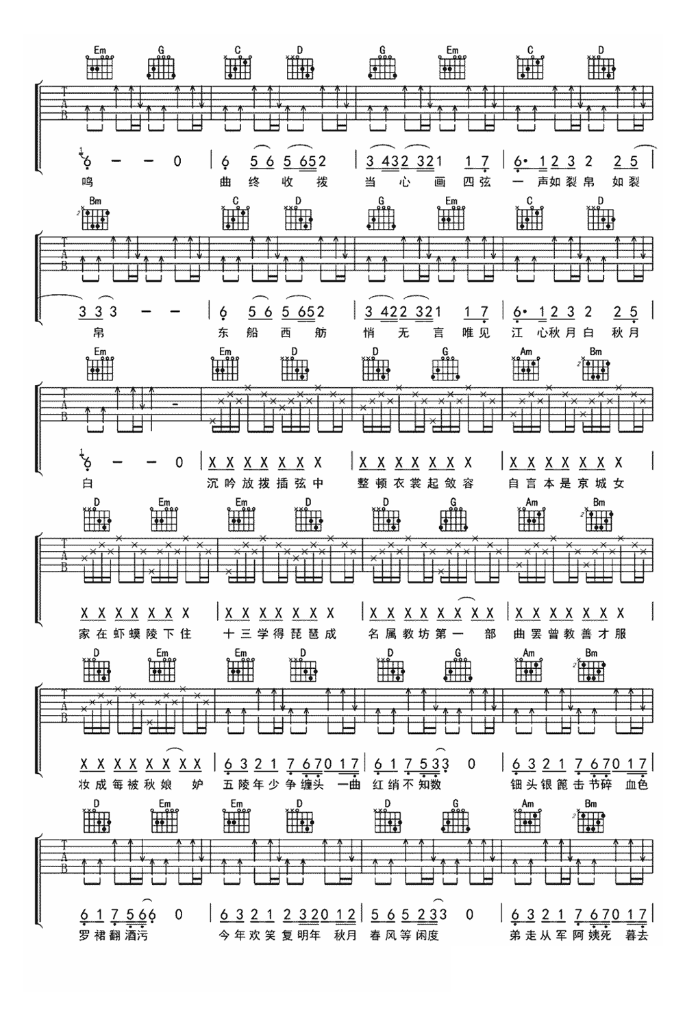 奇然/沈谧仁《琵琶行》吉他谱 - 推荐版本