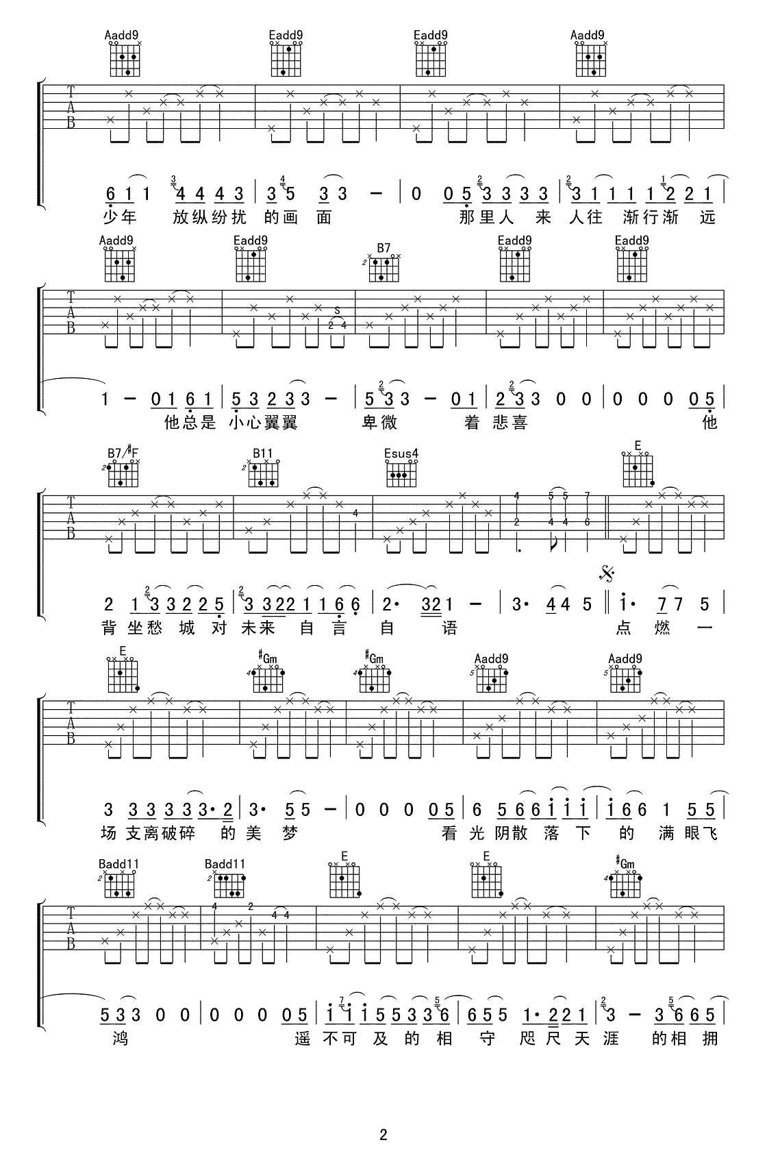 - 马頔《南山南》吉他谱 - 很多人都在弹的版本