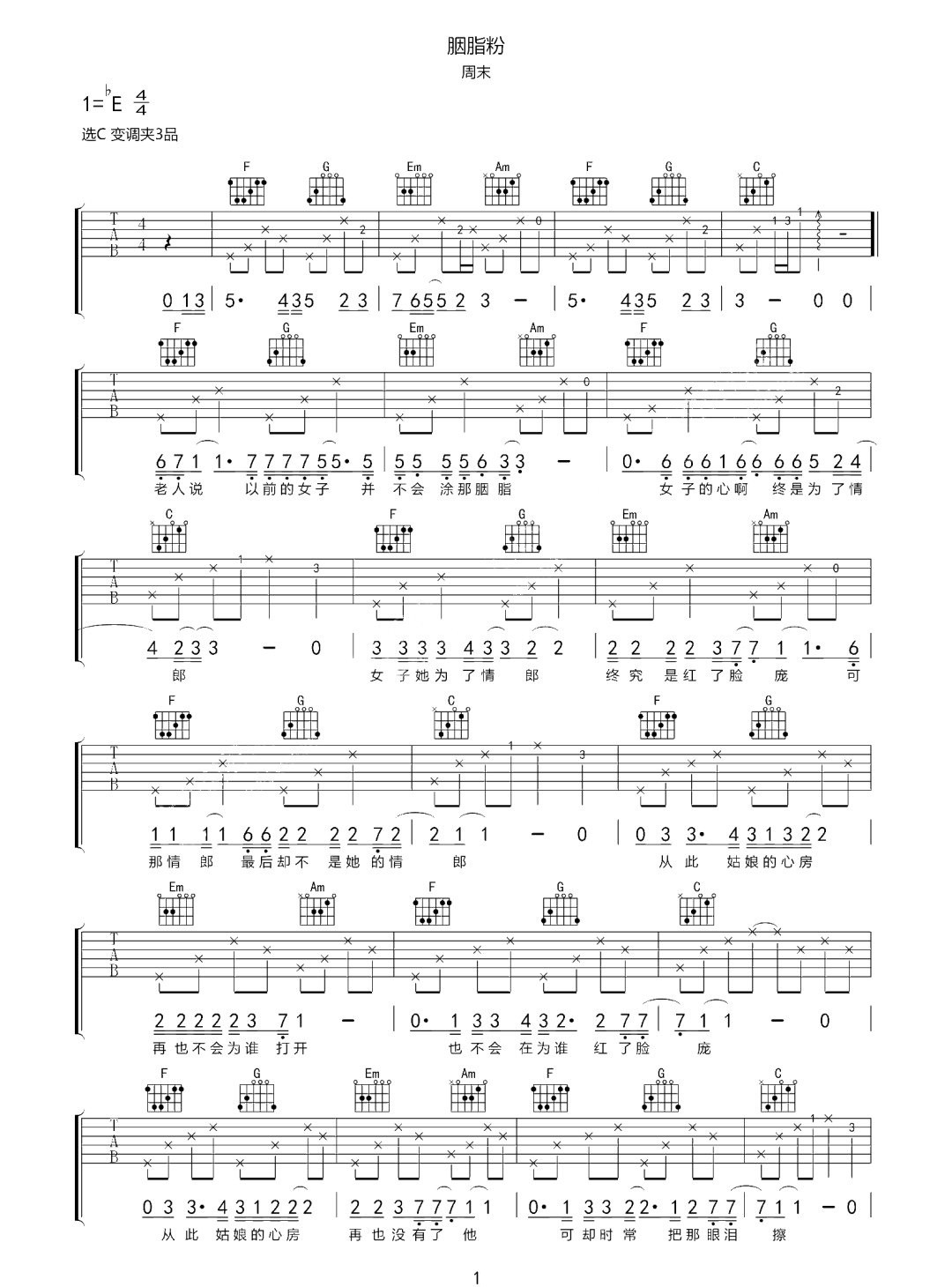 - 周末《胭脂粉》吉他谱 - 很多人都在弹的版本