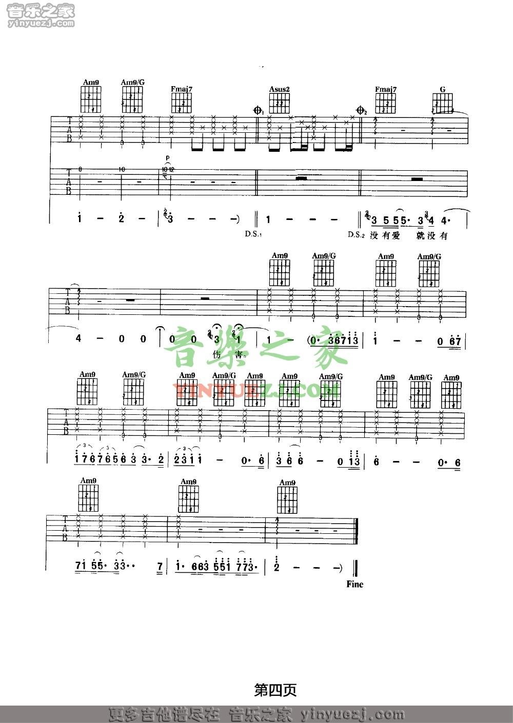 汪峰《爱是一颗幸福的子弹》吉他谱,YYZJ编配出品,共有4张高清图谱。