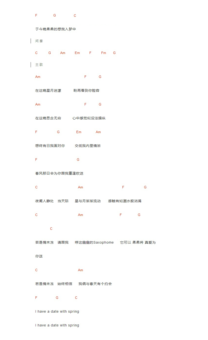 李国祥《我和春天有个约会》吉他谱 - 好听到爆炸