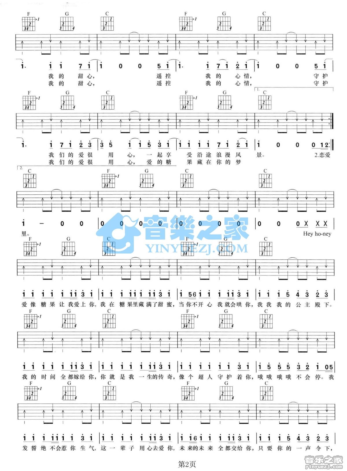 至上励合《甜心》吉他谱,共有3张高清图谱。C调版至上励合《甜心》吉他弹唱六线谱