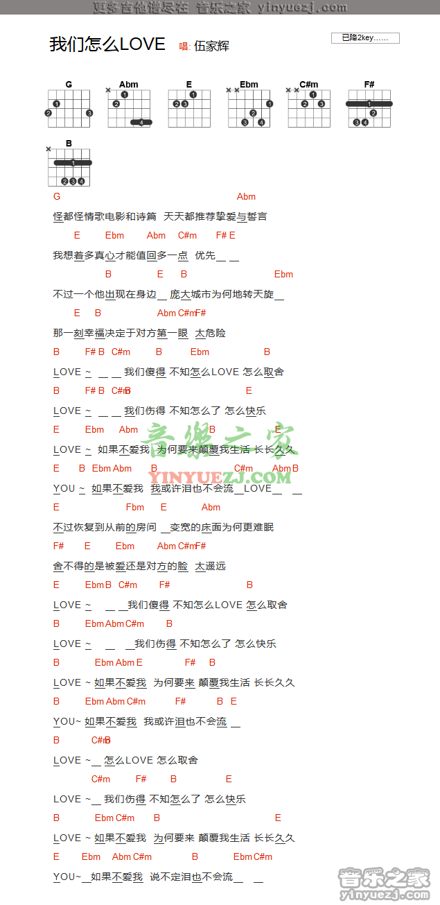 伍家辉《我们怎么love》吉他谱 - 很多人都在弹的版本