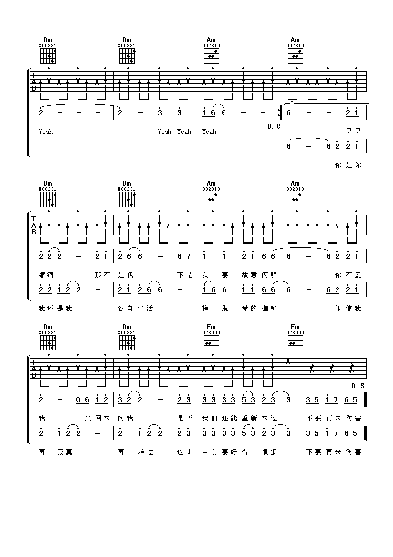 张振宇《不要再来伤害我》吉他谱 - 完整版