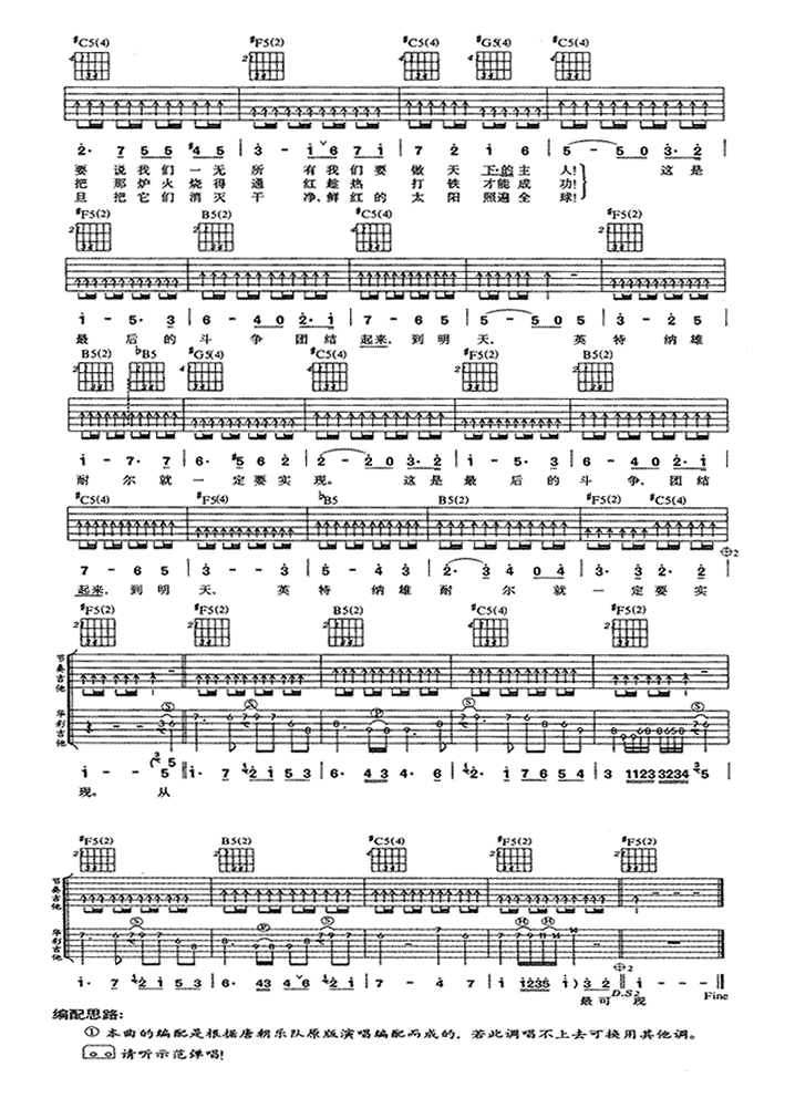 - 唐朝乐队《国际歌》吉他谱 - 小编推荐练习