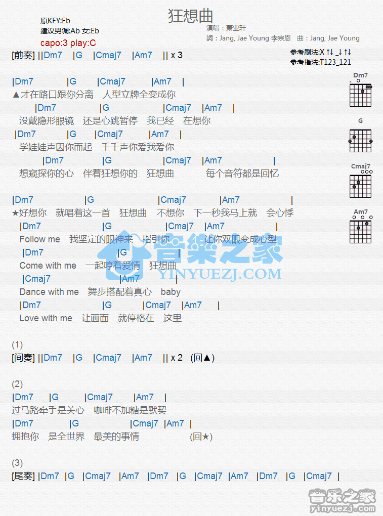 萧亚轩《狂想曲》吉他谱