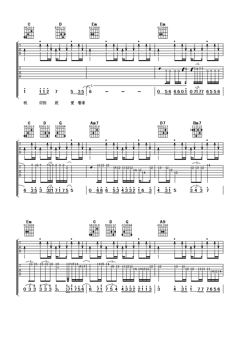 刘嘉亮《你到底爱谁》吉他谱