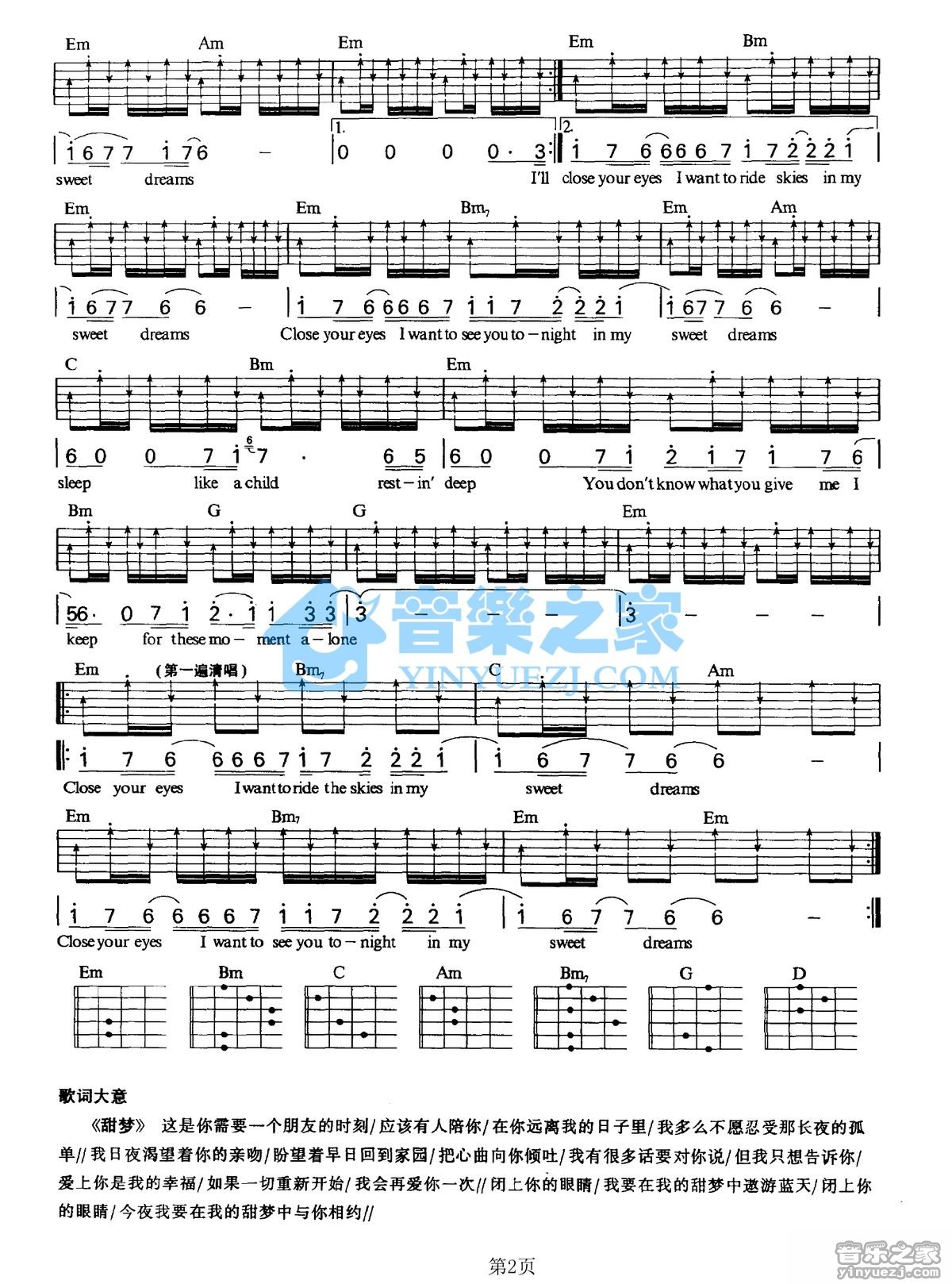 Air Supply《Sweet Dreams》吉他谱,共有2张高清图谱,免翻页排版设计。G调版AirSupply《SweetDreams》吉他弹唱六线谱