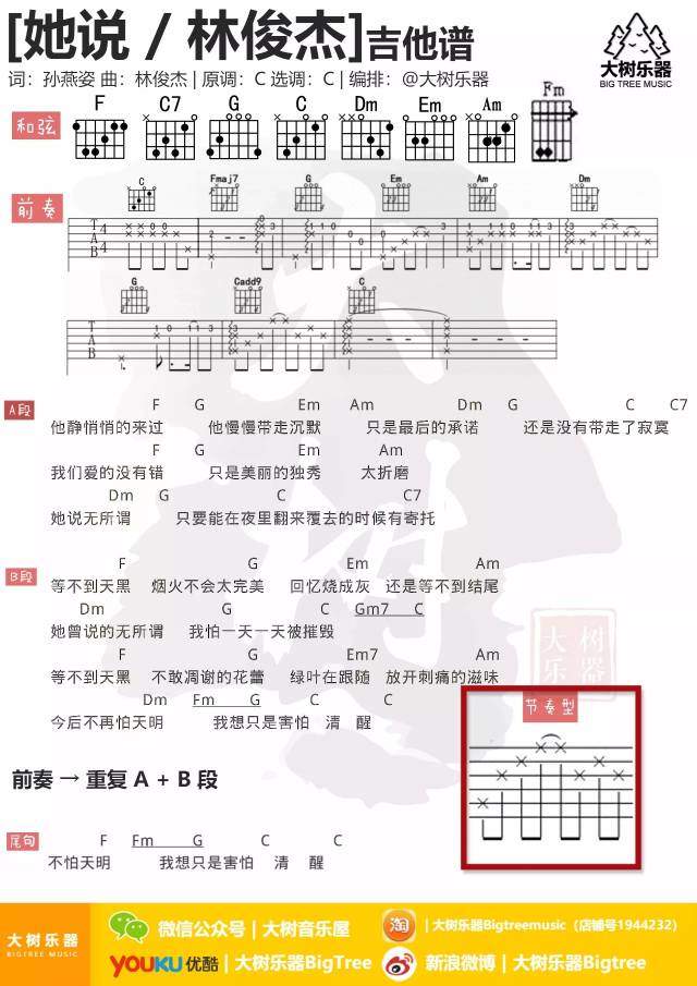 林俊杰《她说》吉他谱 - 免费版